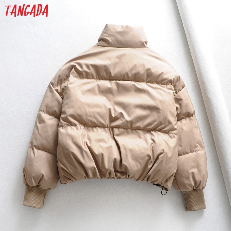 Tangada Frauen Solide Khaki Oversize Parkas Dicke 2021 Winter Reißverschluss Taschen Weibliche Warme Elegante Mantel Jacke 6A120