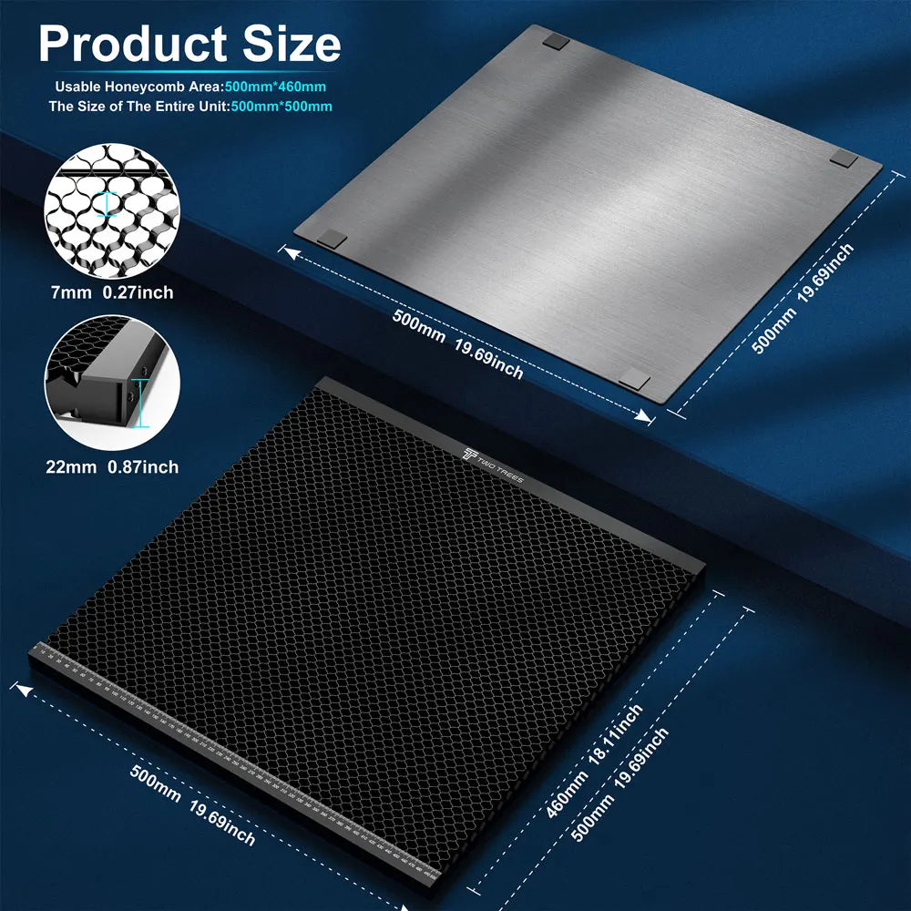 The honeycomb lattice for optimal air flow while cutting. It will help control the temperature of the piece being cut, quick cooling. That will reduce any smoking, soot, or warping of the piece on which you are working. It really reduces smoke and char on back of the piece when cutting, Obtains a Better Build Quality.