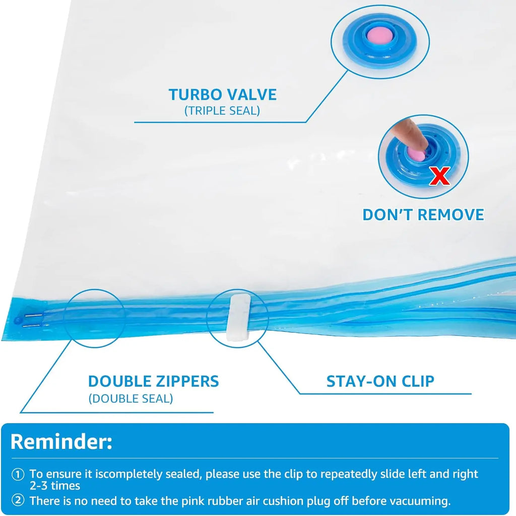 【Einfach zu bedienen】Legen Sie einfach Gegenstände hinein, verschließen Sie den Beutel und verwenden Sie die mitgelieferte Handpumpe, um überschüssige Luft zu entfernen.
