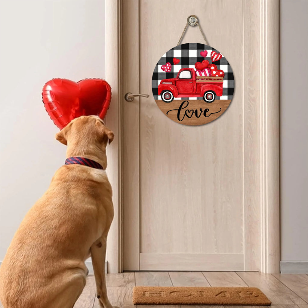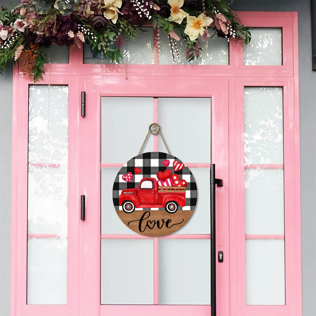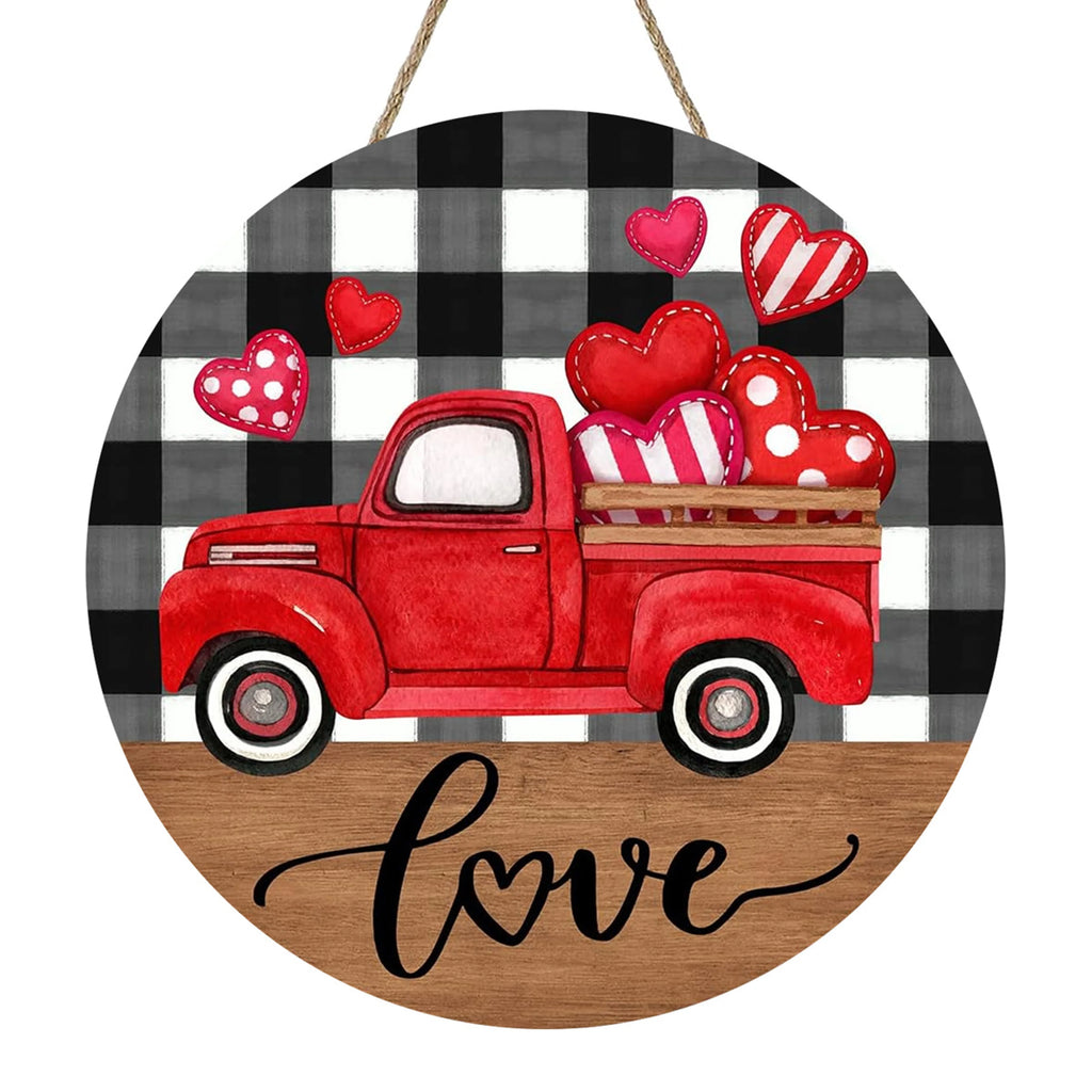 Charming Heart-themed Designs: With Valentine's Round Door Signs and Red Truck Hearts Wood Door Hanger, these signs feature adorable heart-shaped designs that add a touch of love and warmth to any space. The Black White Buffalo Plaid Wooden Plaque adds a trendy and stylish element to your decor.