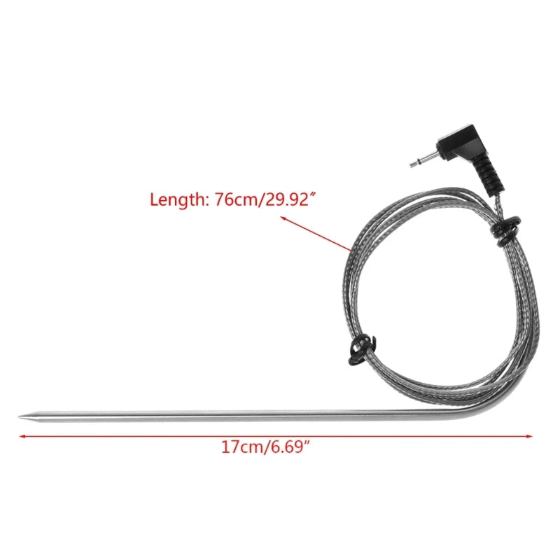 3.Cooking thermometer Probe Length: 6 1/2 inch (166mm), Hybrid Probe: Monitor the meat temperature or ambient temperature (smoker/grill). Digital Thermometer Probe Cable Length: 40" stainless steel mesh cable.