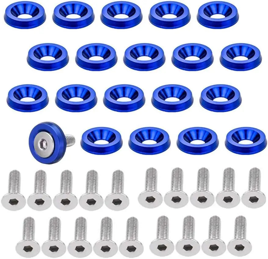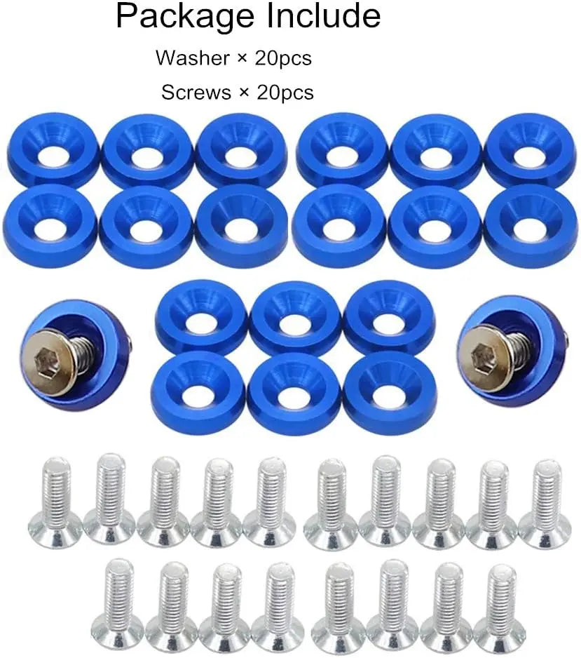 20PCS Aluminum Fender Bumper Washers M6x20mm CNC Billet Bolt Engine Dress Up Kits (Blue) Car Accessiores