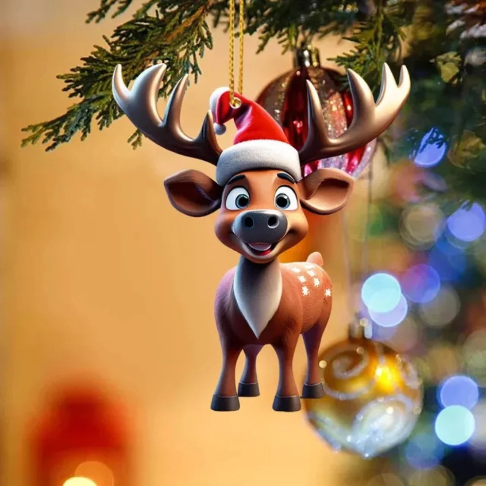 1. Whimsical Christmas Tree Pendant: Our 2D Acrylic Cartoon Fawn Christmas Tree Pendant is a charming addition to your holiday decorations. The adorable fawn design wearing a cute Christmas hat brings a playful and festive to your Christmas tree.