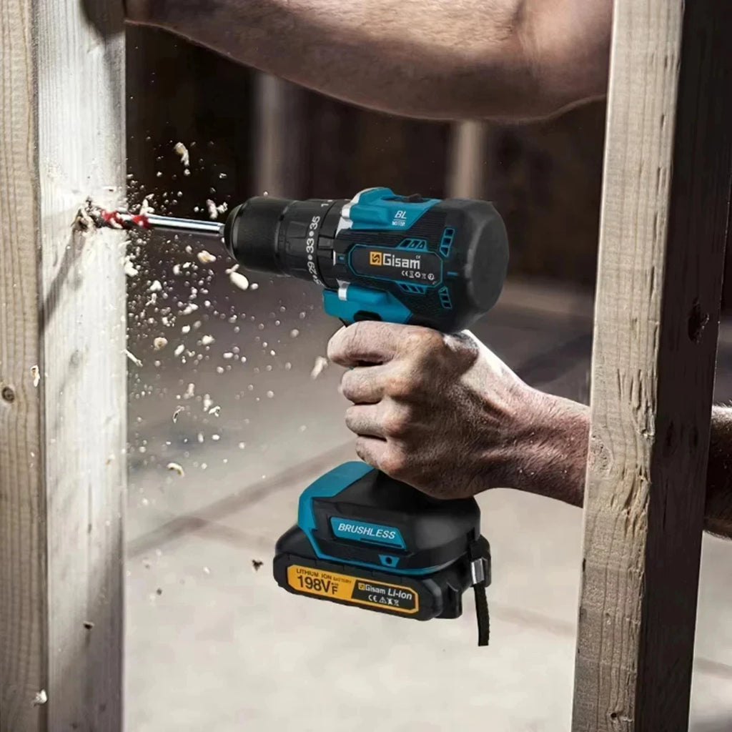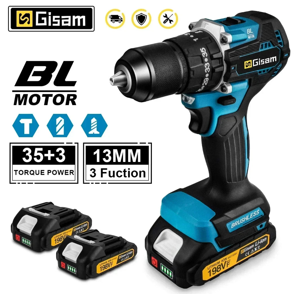 Gisam 13MM 65NM Brushless Electric Impact Drill 35+3 Torque Electric Screwdriver Hammer Drill Tools For Makita 18V Battery Pins