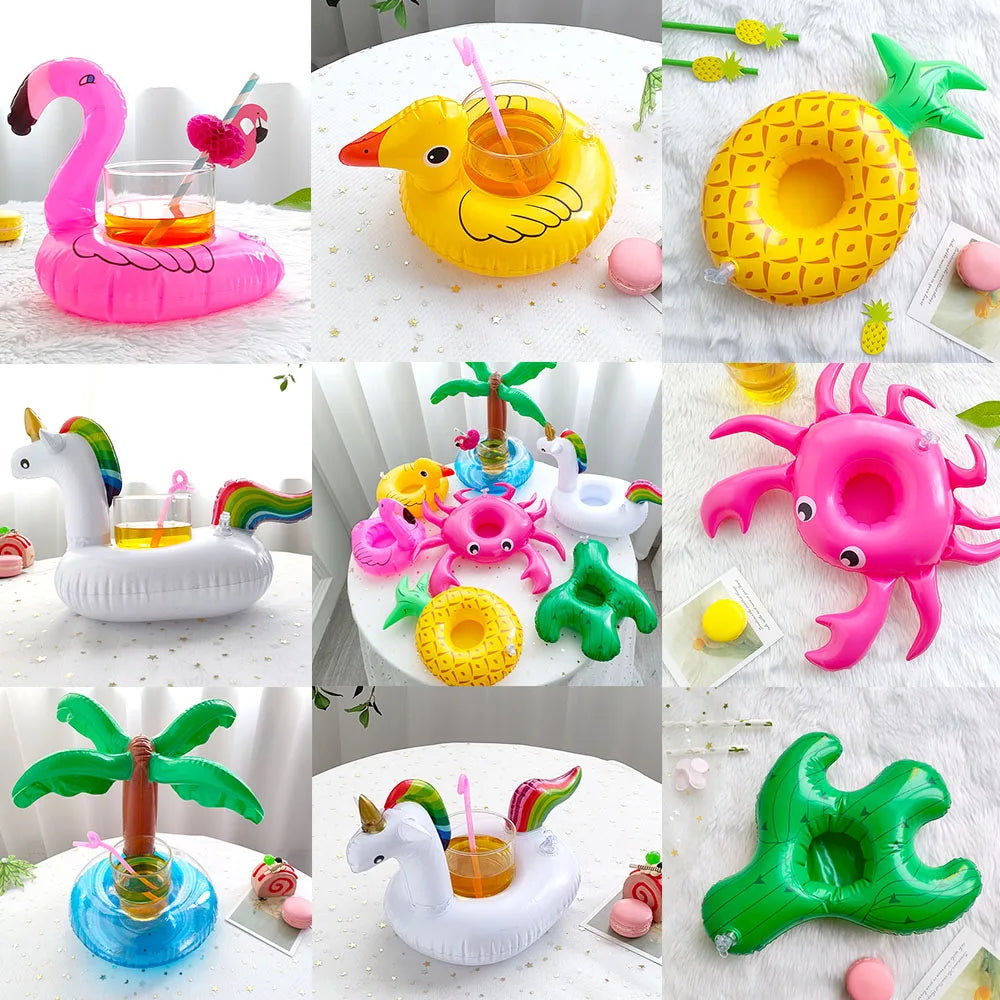 Inflatable Floating Beverage Coaster Flamingo Unicorn Beverage Rack Hawaiian Party Supplies Swimming Pool Birthday Party Decorat