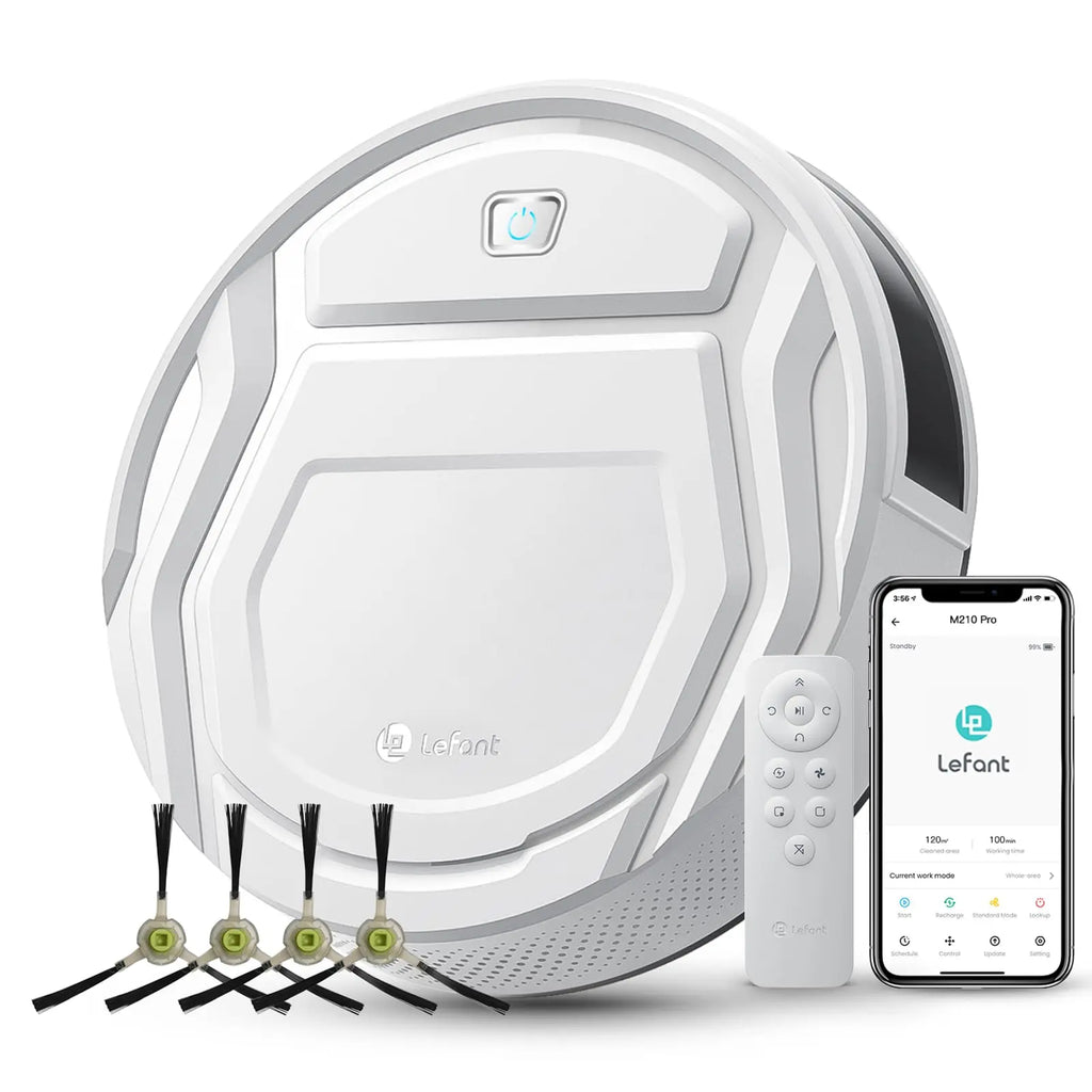 The M210 Pro robot vacuum can clean up to 120 minutes / 1300 Square Feet(Quiet mode) per charge. Enjoy a completely clean on one charge.