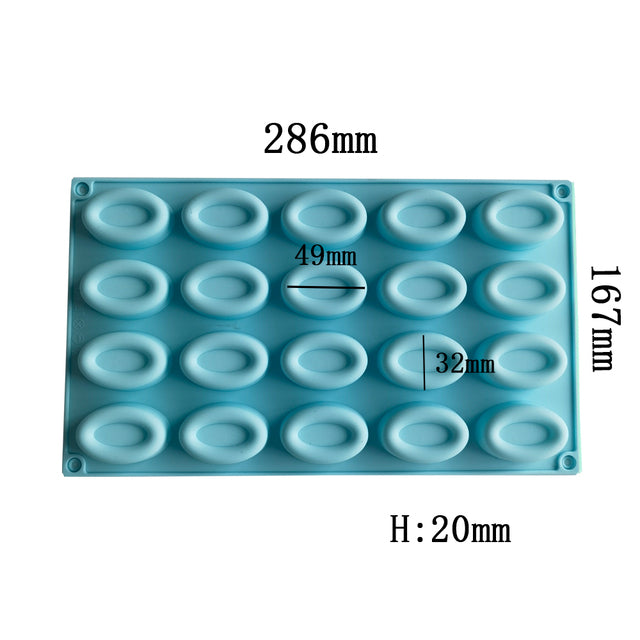 Neue ovale Donut-Form aus Silikon mit 20 Vertiefungen, kleine Kuchen, Schokolade, Pfannkuchen, zum Backen, Mini-Dessert, Küche, DIY, handgefertigte Werkzeuge