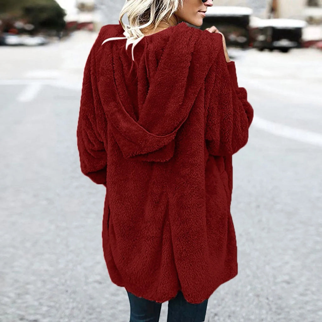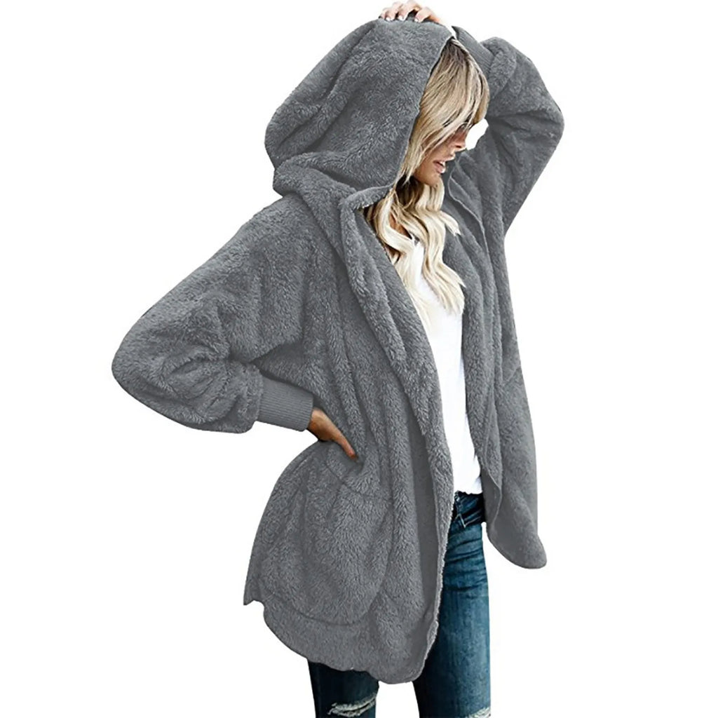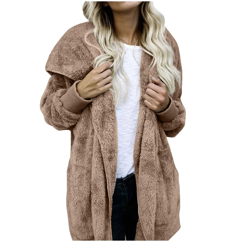 Women Winter Warm Coat Jacket Outwear Ladies Cardigan Coat Double Sided Velvet Hooded Coat