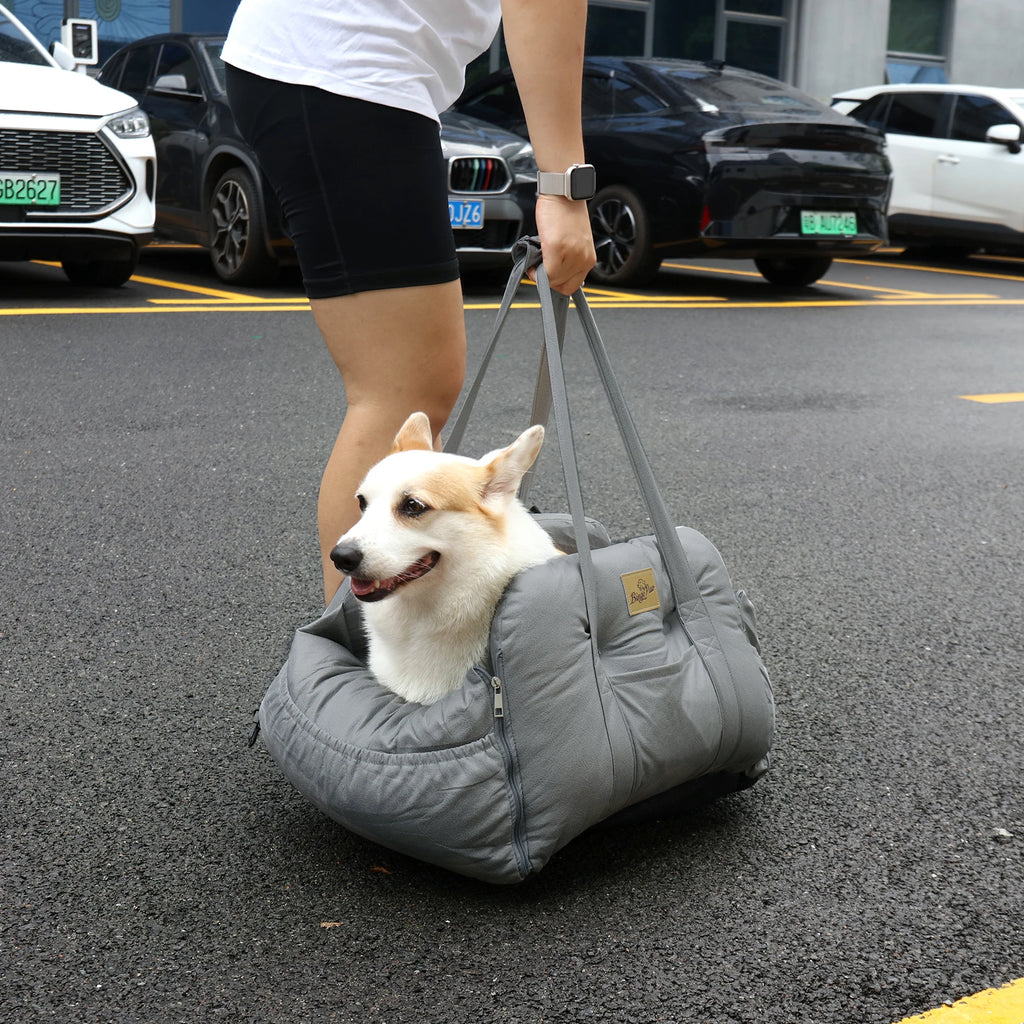 【Functional Pet Bed】Not only used this bed as a car seat bed, carrier bag but also a puppy bed in the home, giving pets peace of mind anda comfortable experience, the size measuring 25.1”by 16.9”by 11”, will fits most small- to medium-sized dogsand cats with max load of 31 lbs, enables you spenda more enjoyable journey with your pets if you use it as car carrier bag