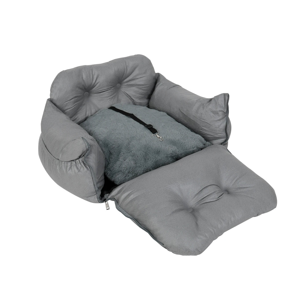 【Convenient For Use】There are three pockets on the bed for storing pet food, snack, garbage bag and other stuff, with a safety seat belt clip to attach to dog’s collar, keep him secure when you’re driving, 600D anti-skid rubber bottom won’t move around easily and keep in place