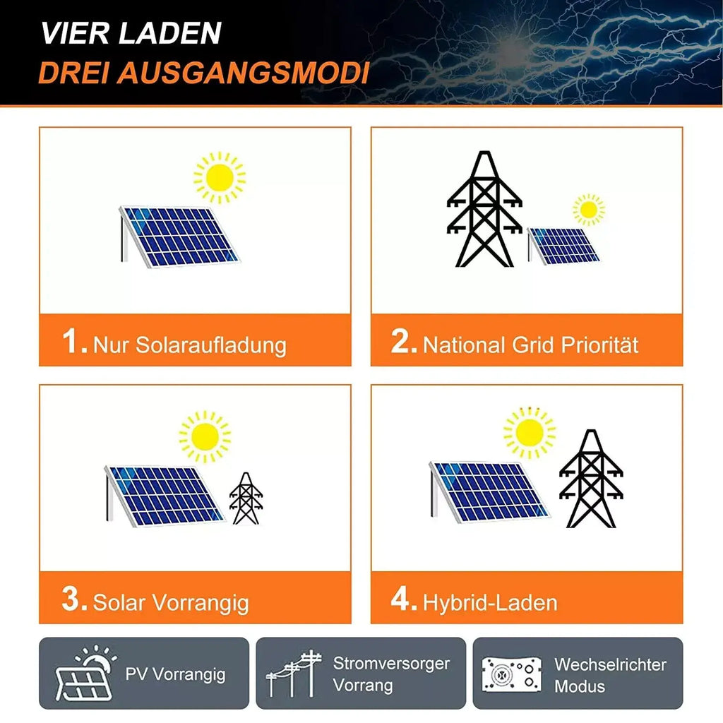 • Configurable AC/Solar Charger priority via LCD setting
