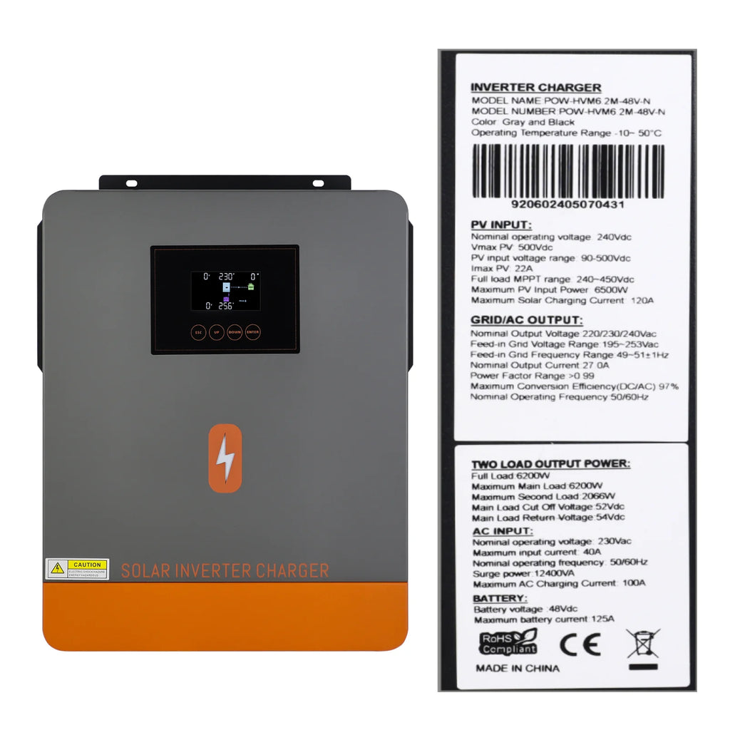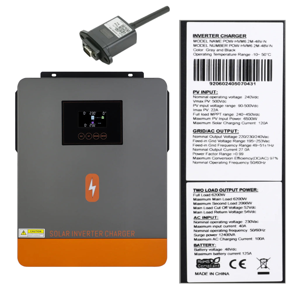PowMr 6.2KW 4.2KW 3KW 2KW Hybrid Solar Inverter with WIFI MPPT 120A 50HZ Charge 12V/24V/48V LiFePo4 Battery 230V PV Output 500V