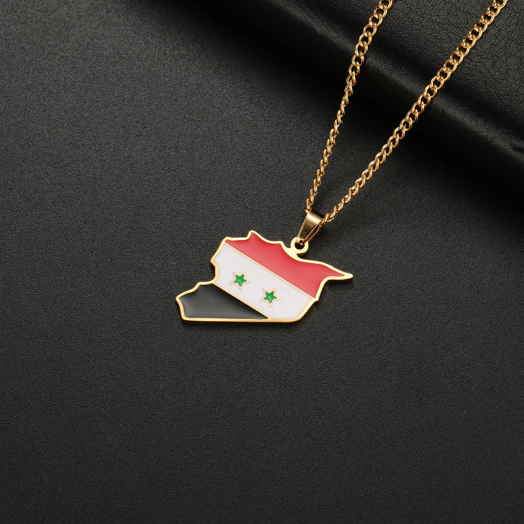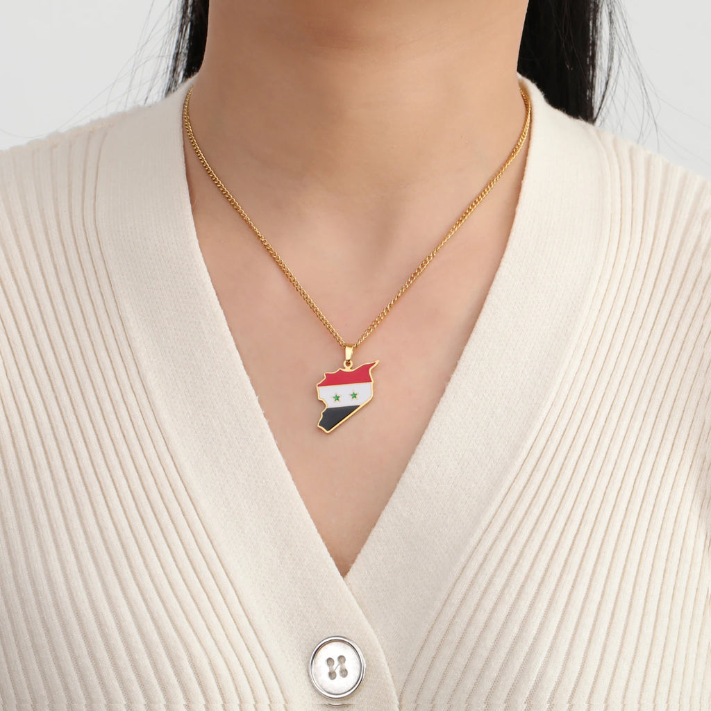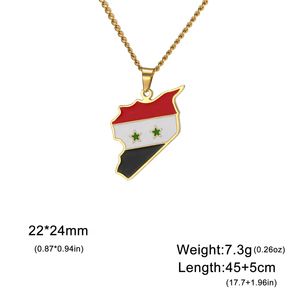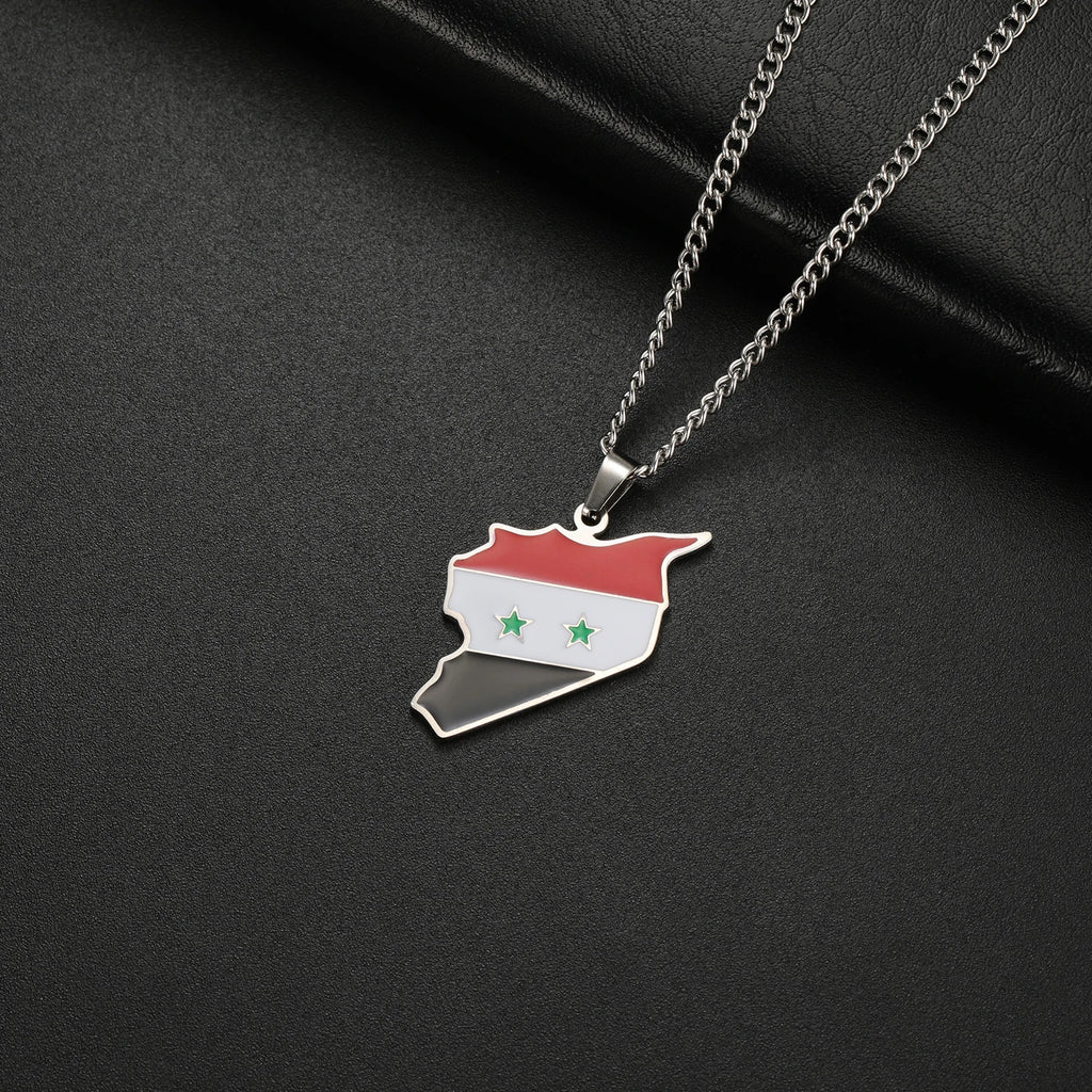Syria National Map Shapes Drop Oil Color Pendant Necklaces for Women Man Stainless Steel Peace Lovers Jewelry Accessories Gift