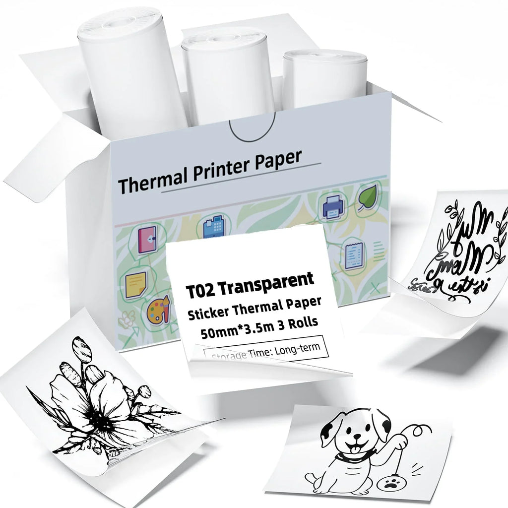 Thermal Paper Transparent Sticker For Phomemo/Memoking M02/T02 Mini Printer for Journal Photo Text Notes 53mm