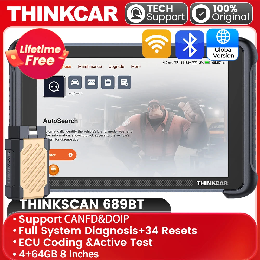 THINKCAR THINKSCAN 689BT OBD2 Diagnostic Toool CANFD DOIP Car All System Diagnosis ECU Coding Bi-directional Lifetime Free
