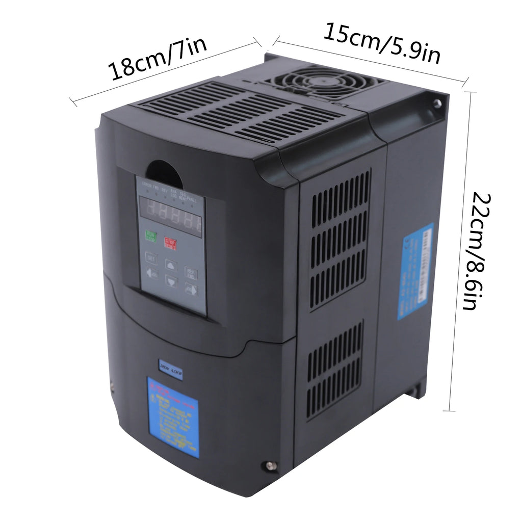 This is a 4kw three-phase variable frequency drive that can control the motor stably and make it run well. It is made of high-quality aluminum and plastic which is durable and has a long service life. You can easily operate and use it thanks to its convenient panel. It steadily converts the current frequency to regulate the speed of the motor, ensuring more accurate and fine processing.
