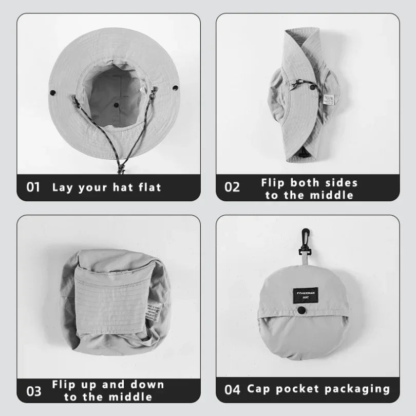 Waterproof Bucket Hat for Women 6cm Brim Sun Hat Foldable Hangable Outdoor Hiking Camping Panama Caps Quick Drying Basin Cap