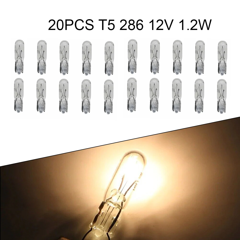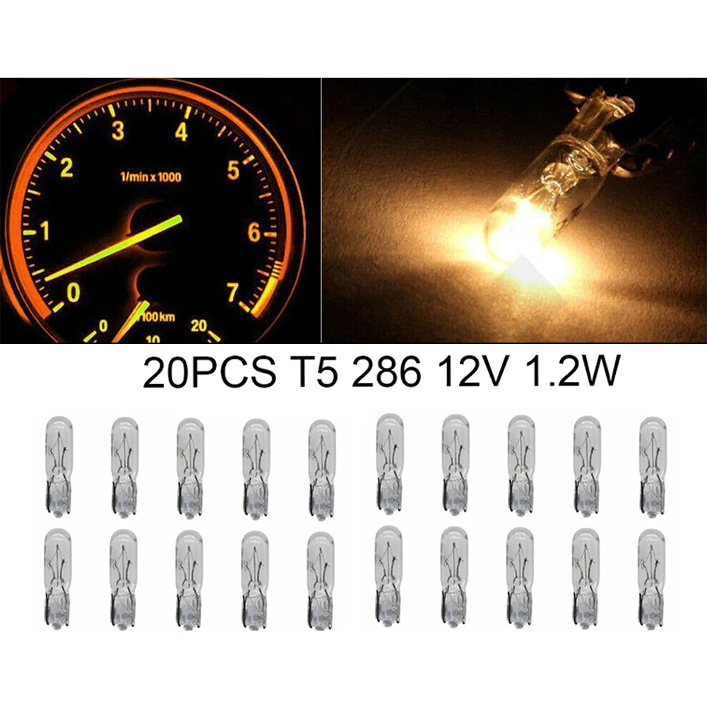 20PCS T5 Dashboard Bulb 12v 1.2w Car Halogen Lamp Instrument Lights Auto Interior Light Miniature Bulb Indicator Car Styling