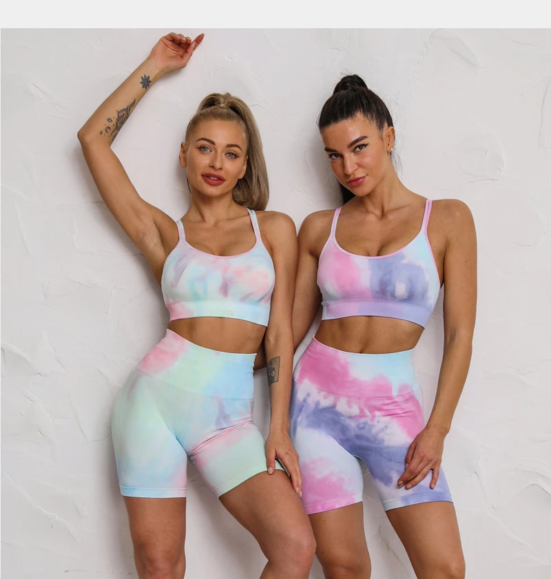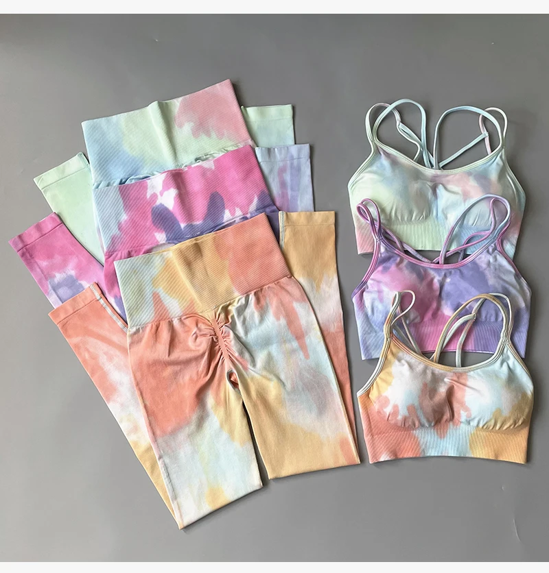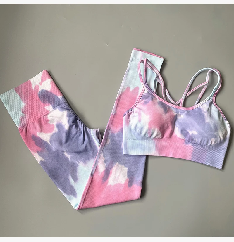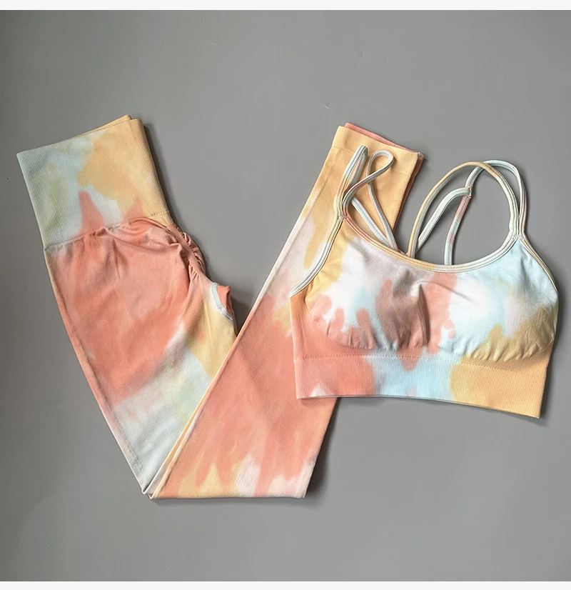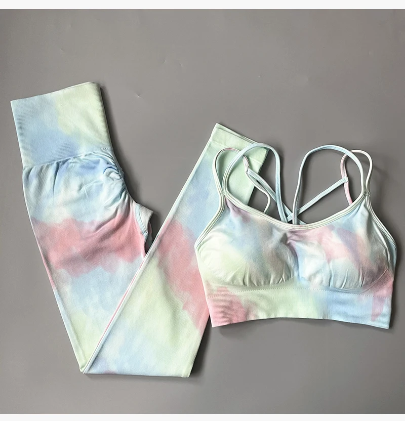 2 STÜCKE Nahtlose Frauen neue färben Yoga Set Workout Sportswear gym fitness Kleidung Sport-BH Hohe Taille Leggings Sport Suits2021