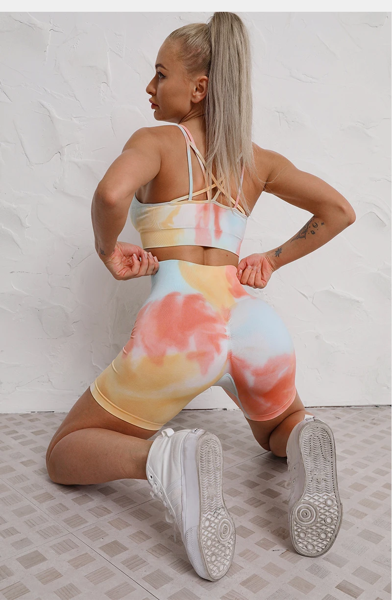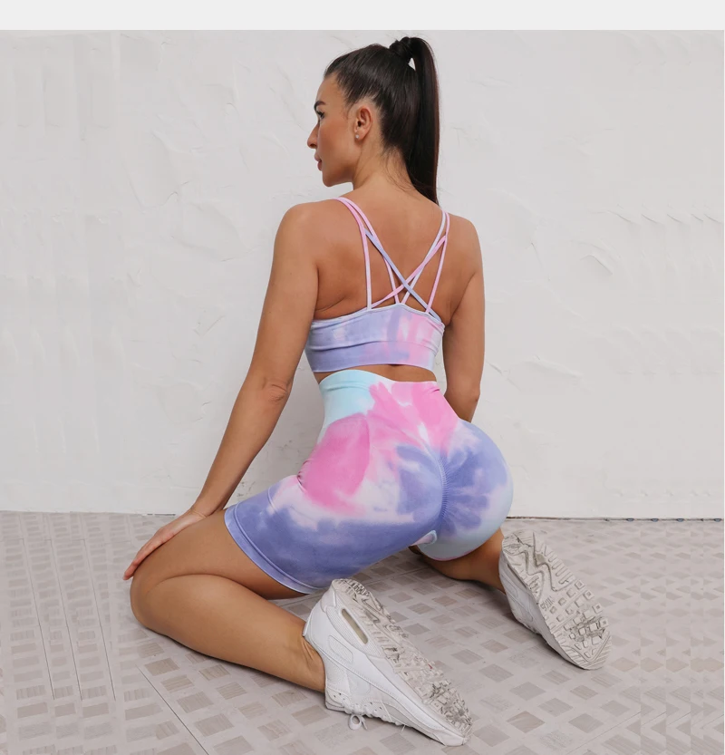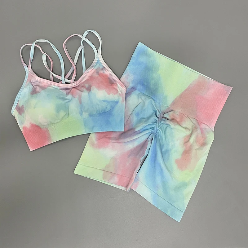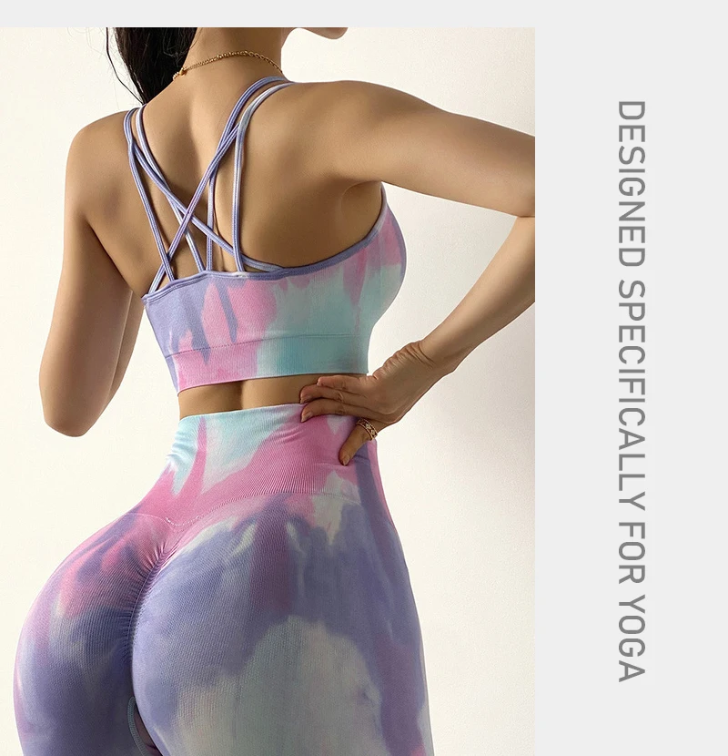 2 STÜCKE Nahtlose Frauen neue färben Yoga Set Workout Sportswear gym fitness Kleidung Sport-BH Hohe Taille Leggings Sport Suits2021