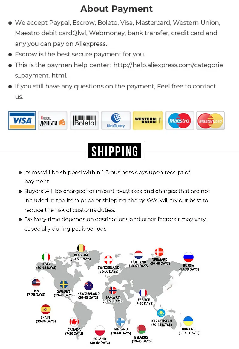 Das Produkt wird innerhalb von 24 Stunden schnell im AliExpress-Lager versendet. Dieser Link unterstützt keine benutzerdefinierten Größen. Wenn Sie benutzerdefinierte Größen haben, wenden Sie sich bitte an den Kundenservice des Geschäfts, danke.