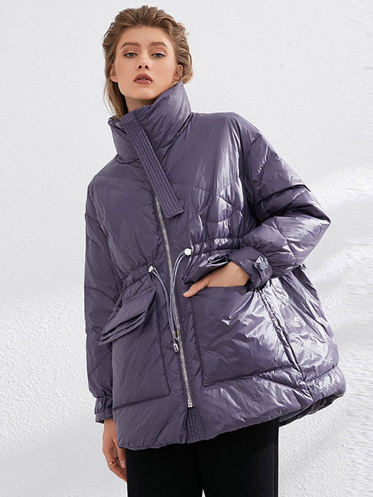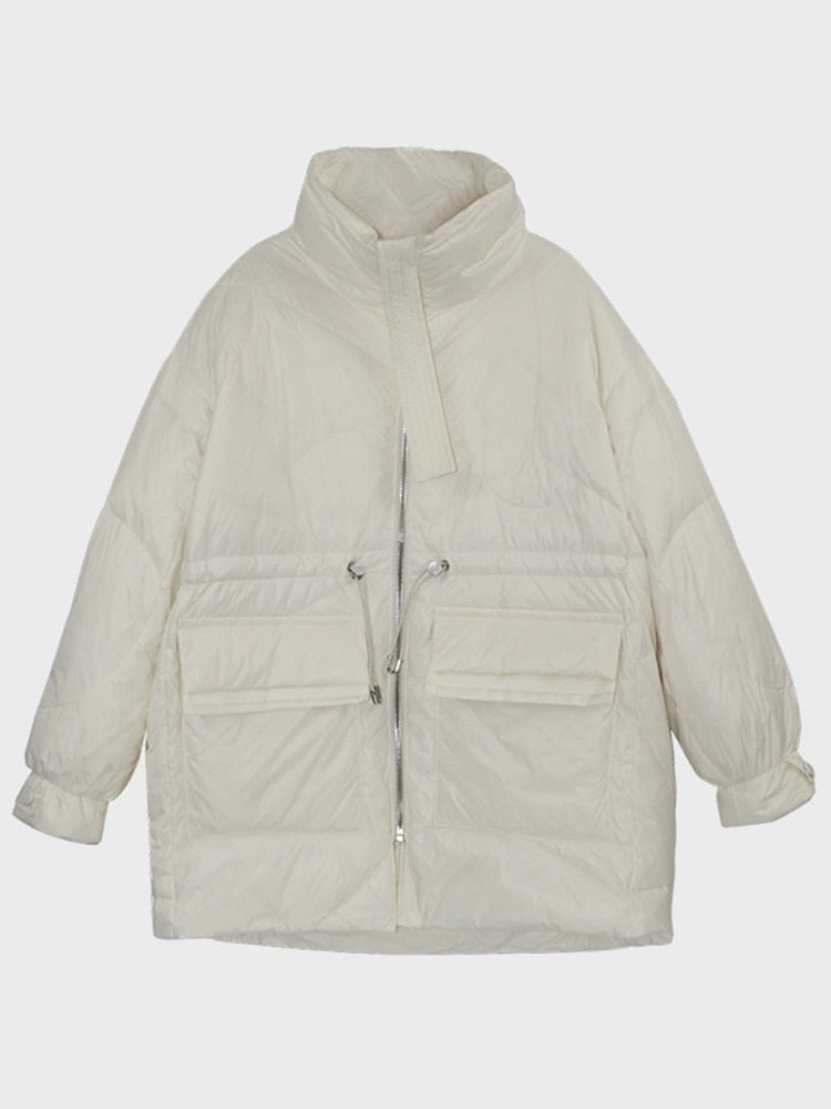 Aachoae Pure Winter Leichte Daunenjacke Damen Dicke Warme Fledermaus Langarm Lose Doudoune Tasche Ultraleichte Entendaunen