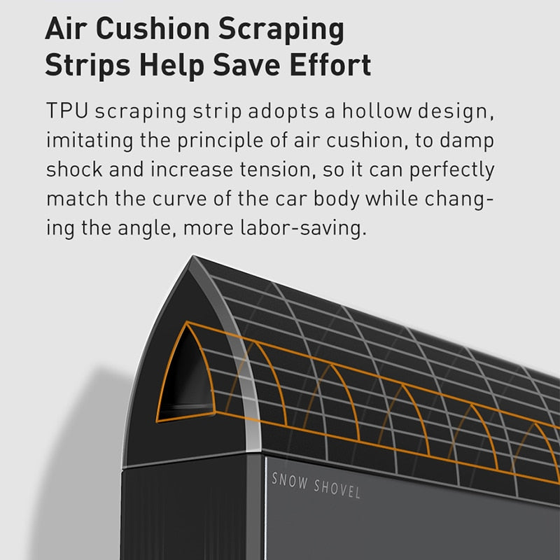 Beide Seiten des Eiskratzers können verwendet werden, und die geneigte Oberfläche passt sich für eine höhere Effizienz der Kurve von Autos an.