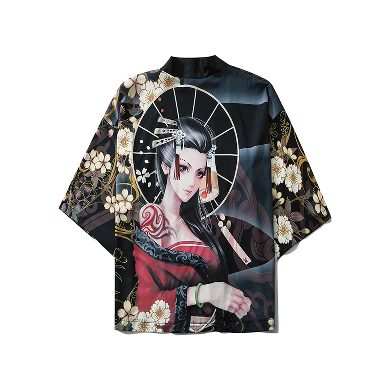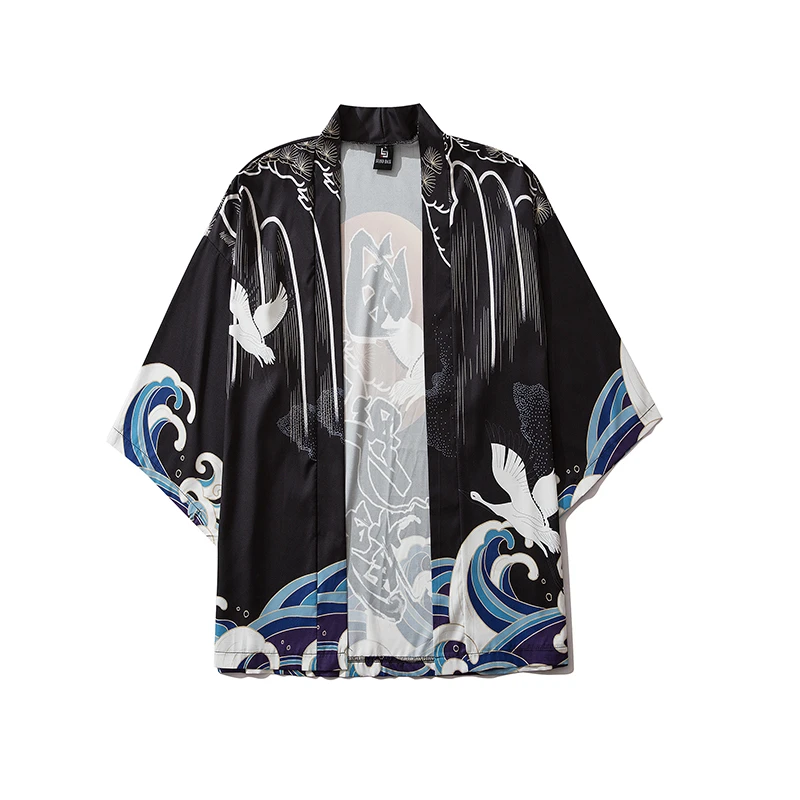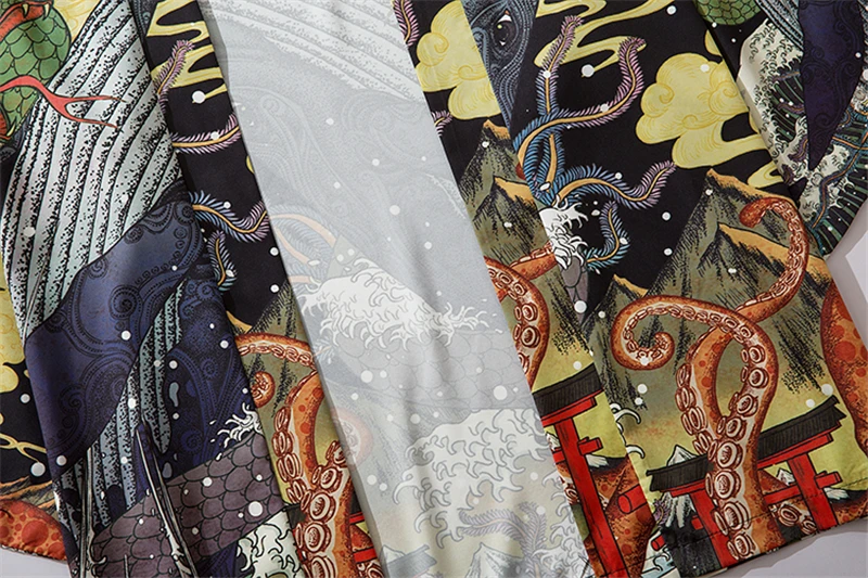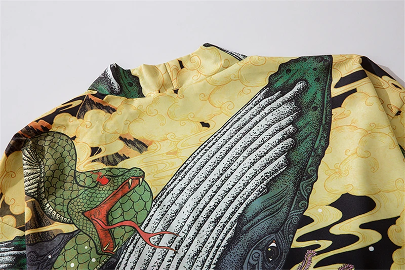 Bebovizi Mode japanischer Anime-Stil Whale Print Kimono Damen Strickjacke Yukata Kimono Streetwear Herren lose asiatische Kleidung