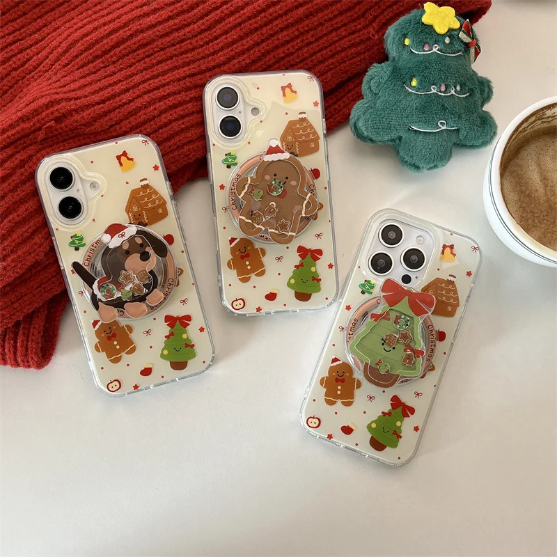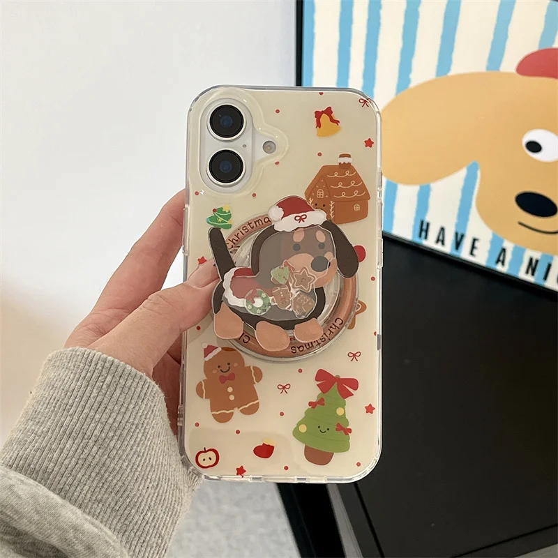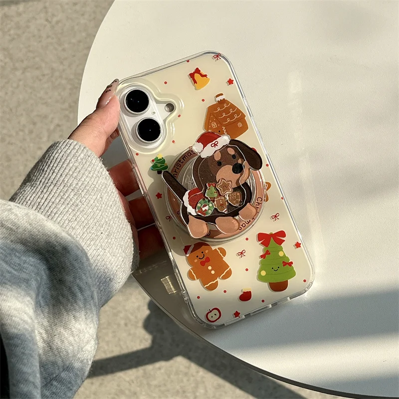 Cute Christmas Magnentic Phone Case For iPhone 16 Pro 14 13 15 Pro Max Cover with Magsafe Holder Shockproof Cute Puppy Cases 15