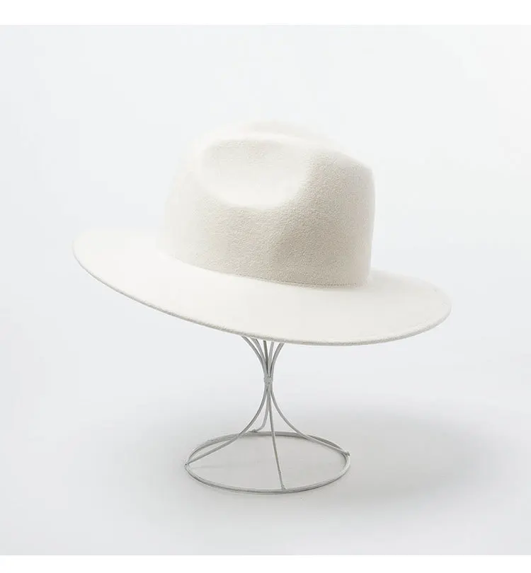 Eleganter Wollfilzhut, weißer Fedora mit breiter Krempe, für Hochzeit, Kirchenhut, Fedora-Hut, Dame, Winter, Floppy, Sombrero, Mujer, Fascinator, Mütze