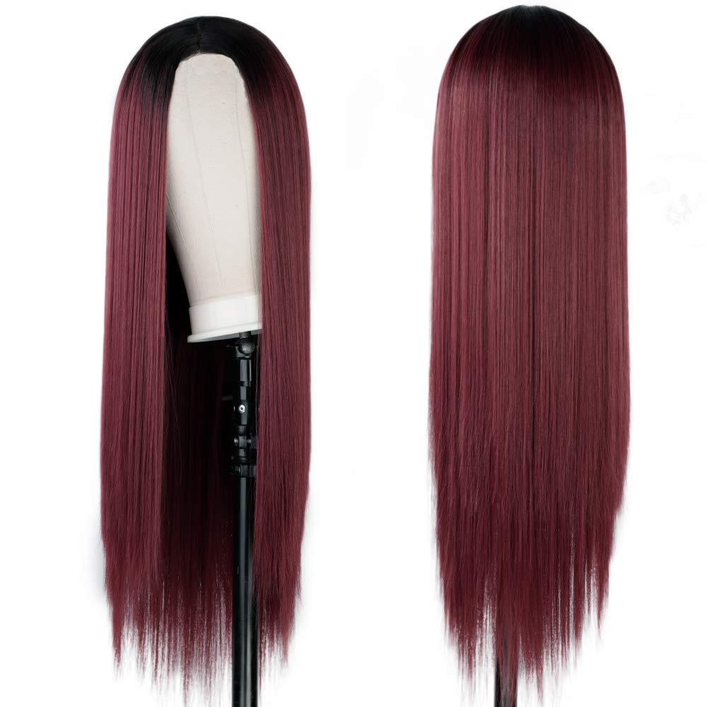 ♥The wig is mixed with a variety of imported synthetic fibers, which is more natural. Wine red with deep roots.