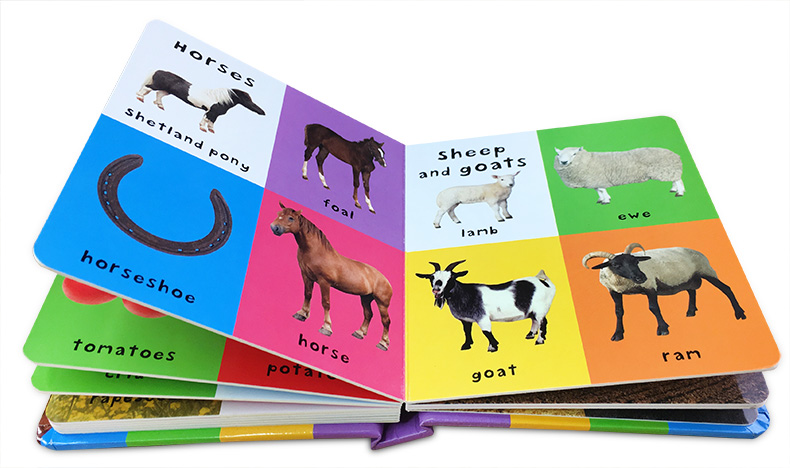 Ein weiches, gepolstertes Wortbuch aus Pappe. Vollgepackt mit über 100 ersten Wörtern zum Lernen und hellen, lebendigen Bildern, die Babys gerne ansehen werden!