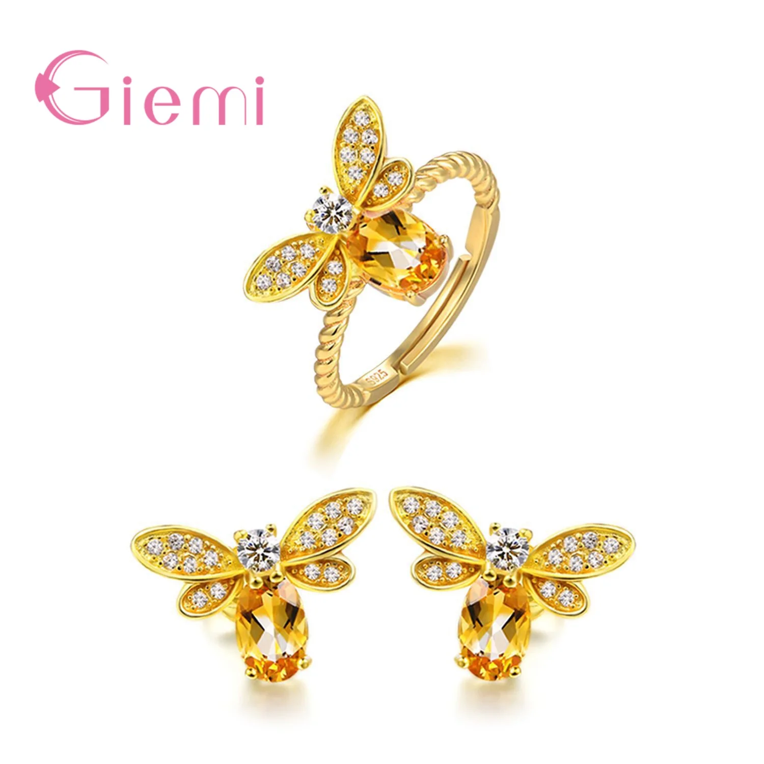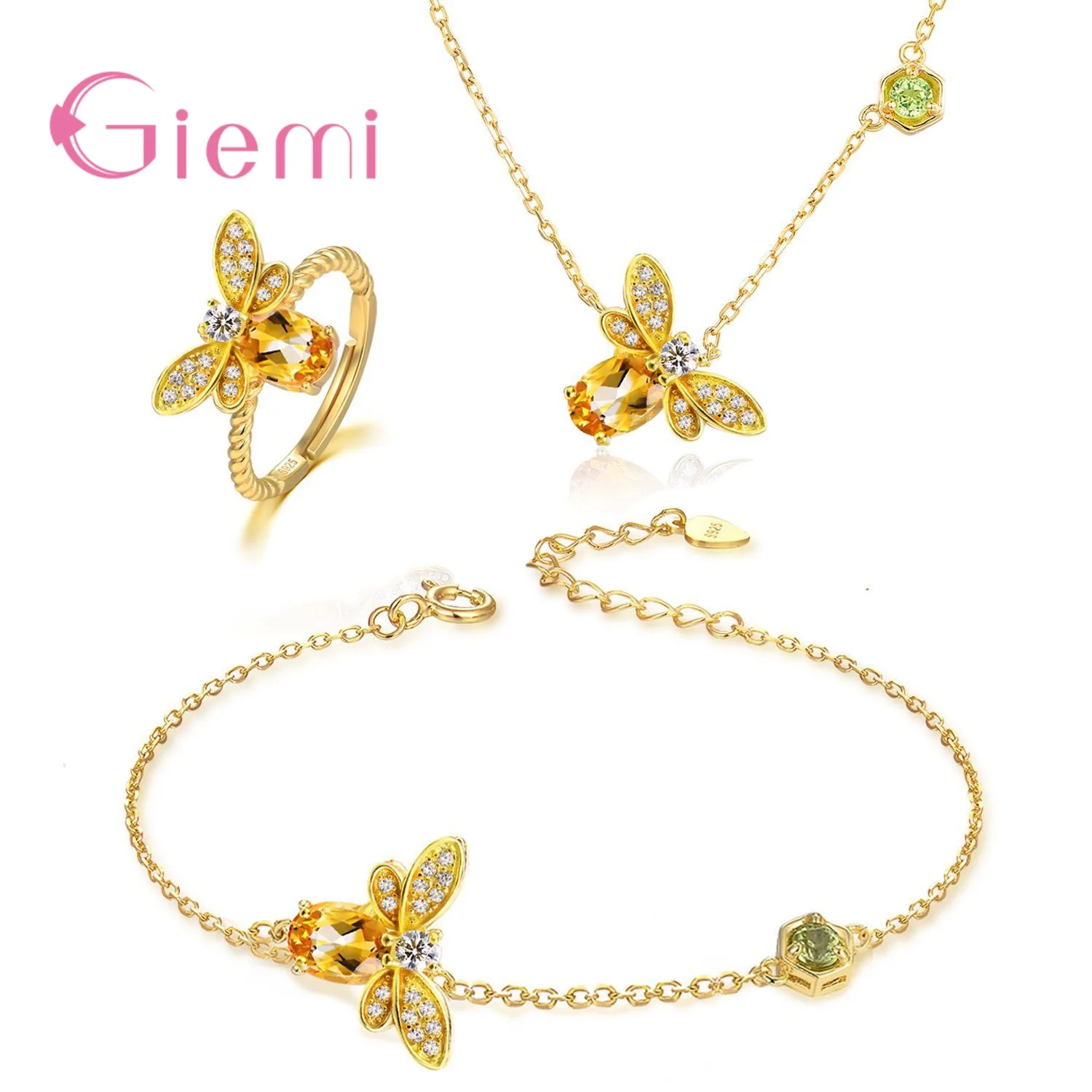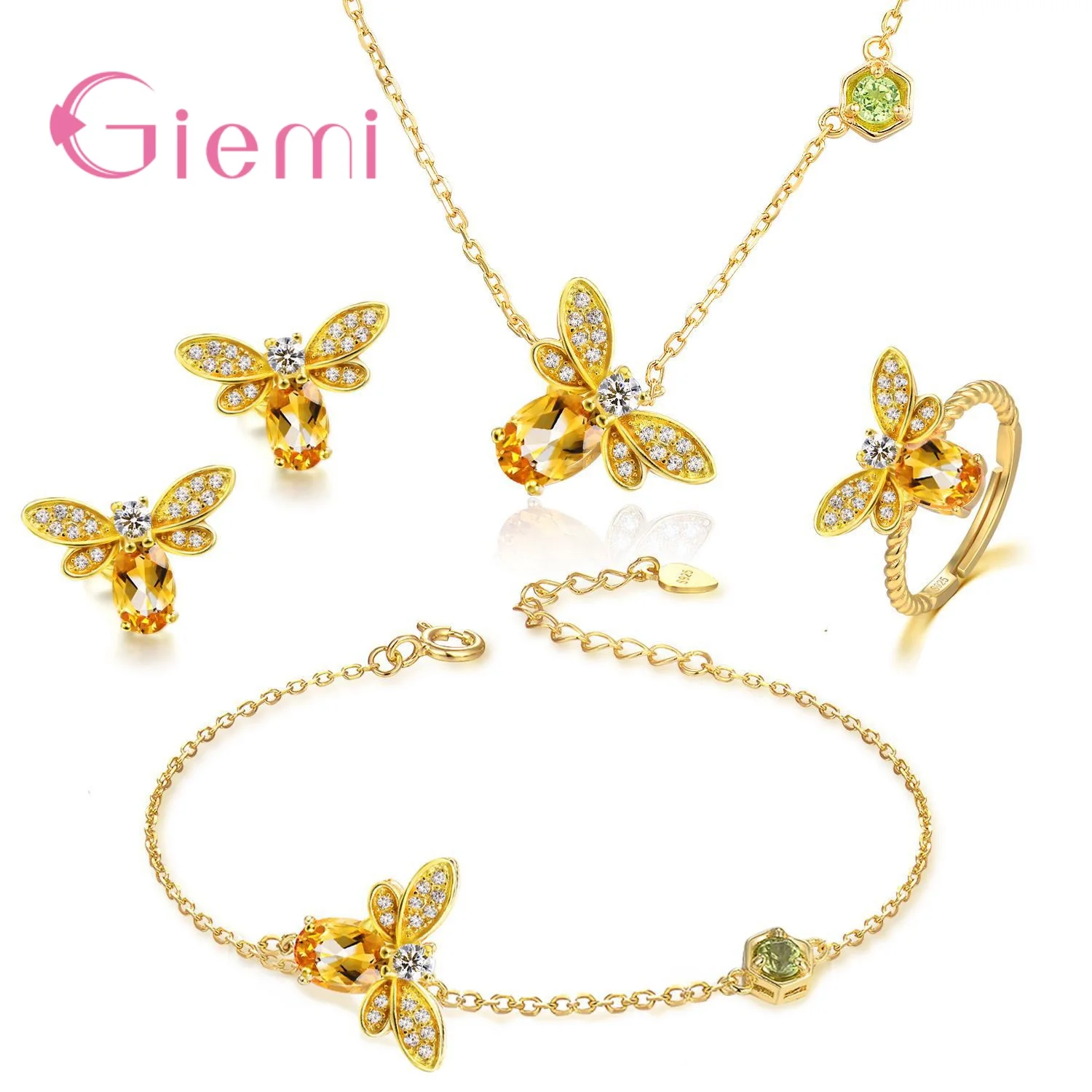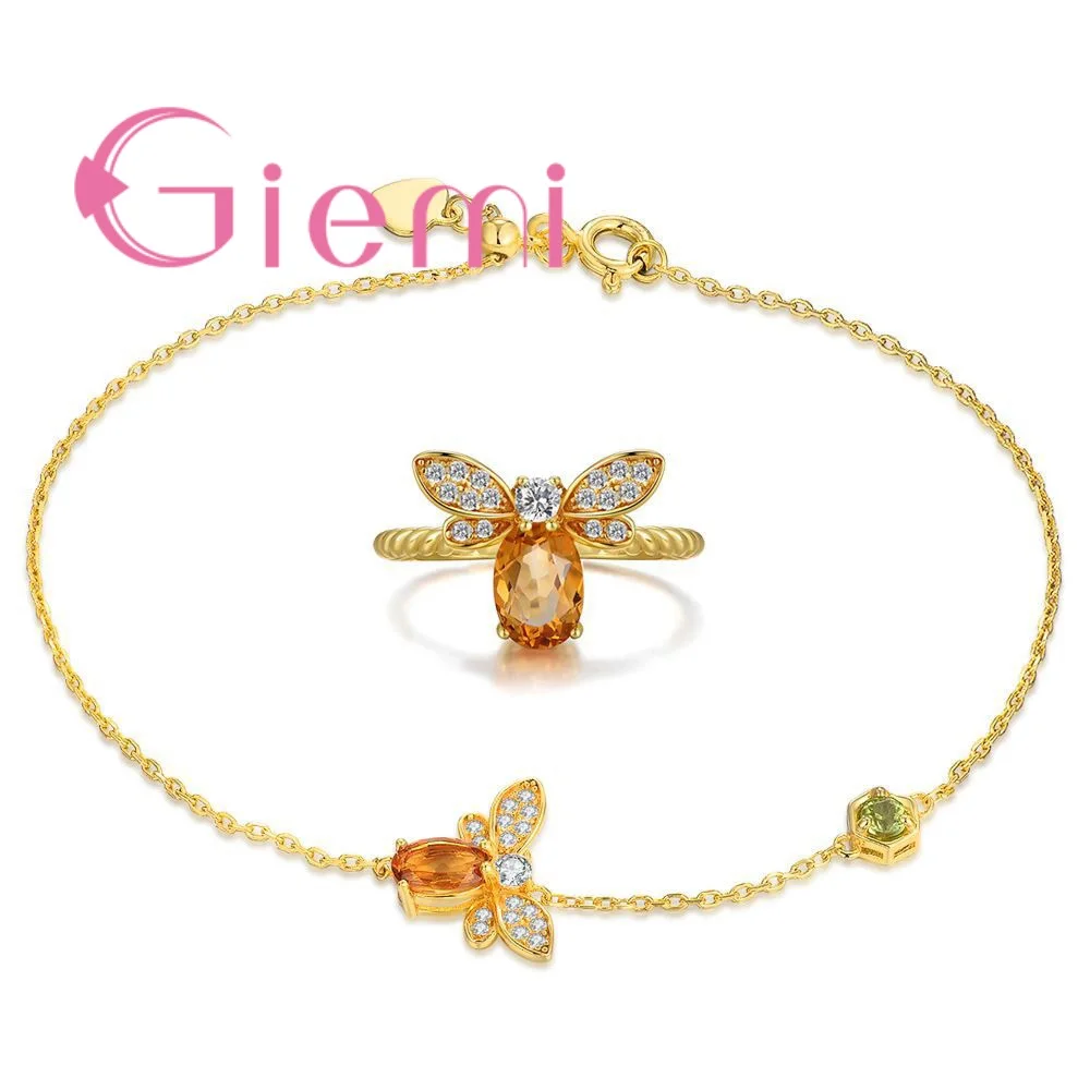 Women Animal Bee Cubic Zirconia 925 Sterling Silver Wedding Jewelry Sets Earrings Pendant Necklace Rings Earrings Bracelets