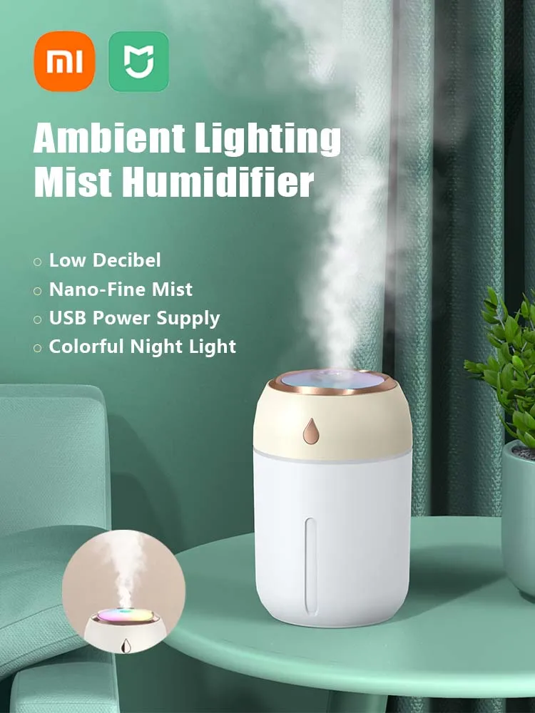 Xiaomi Mini Humidifier USB Plug Nanoscale Silent Streaming Ambient Light 330ML Mist Adjustable Portable For Car Office Household