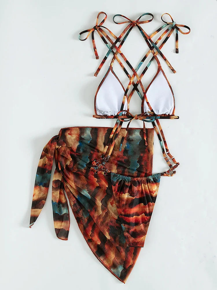 3PCS Print Bandage Micro String Bikini Women Swimsuit Female Swimwear Three-pieces Bikini set Skirt Bathing Suit Swim Beachwear