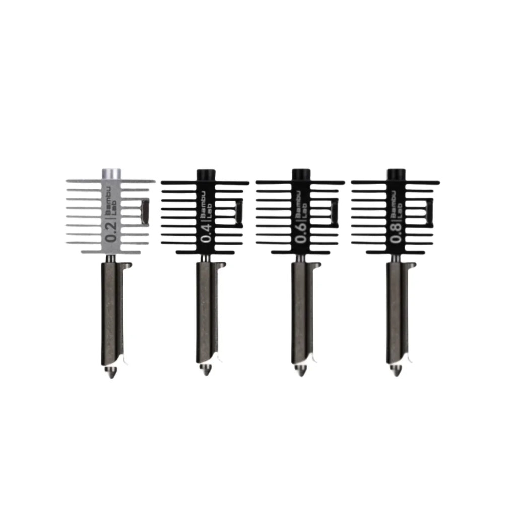 Comparison of different sizes of nozzles: 0.4mm nozzle is the standard nozzle diameter for modern 3D printers, which effectively balances printing quality and printing speed. The Tuozhu A1 series 3D printer adopts a 0.4m nozzle size.