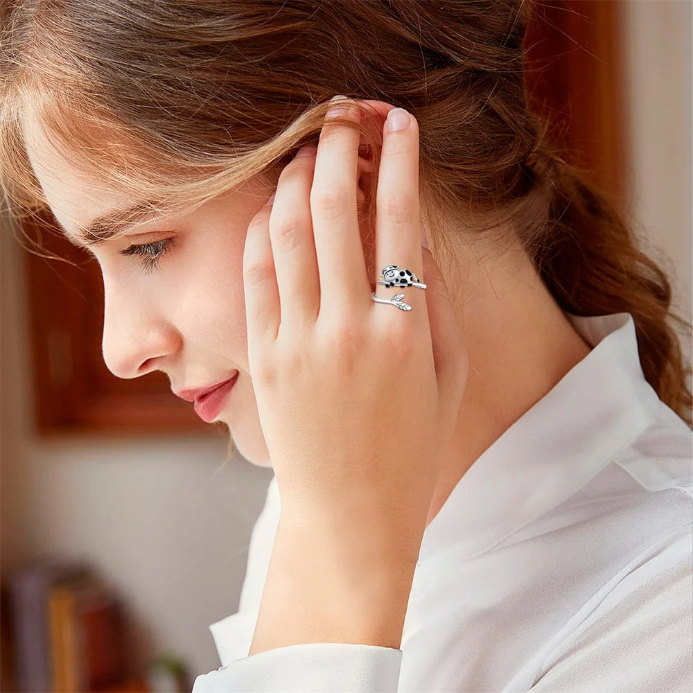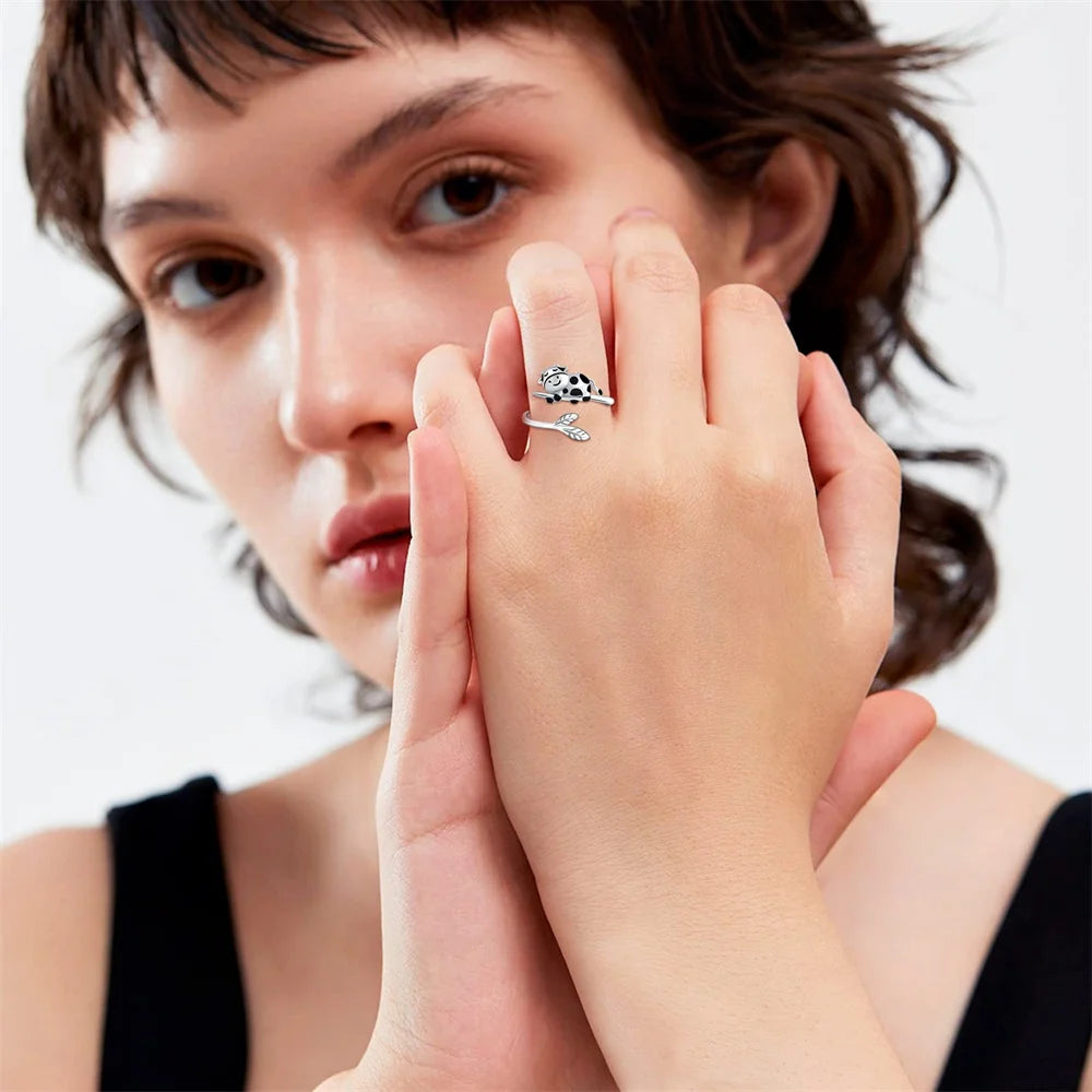 Harong Design New Cow Ring Exquisite Cute Animal Silver Plated Open Ring for Adult Children Party Jewelry Gift Christmas Present