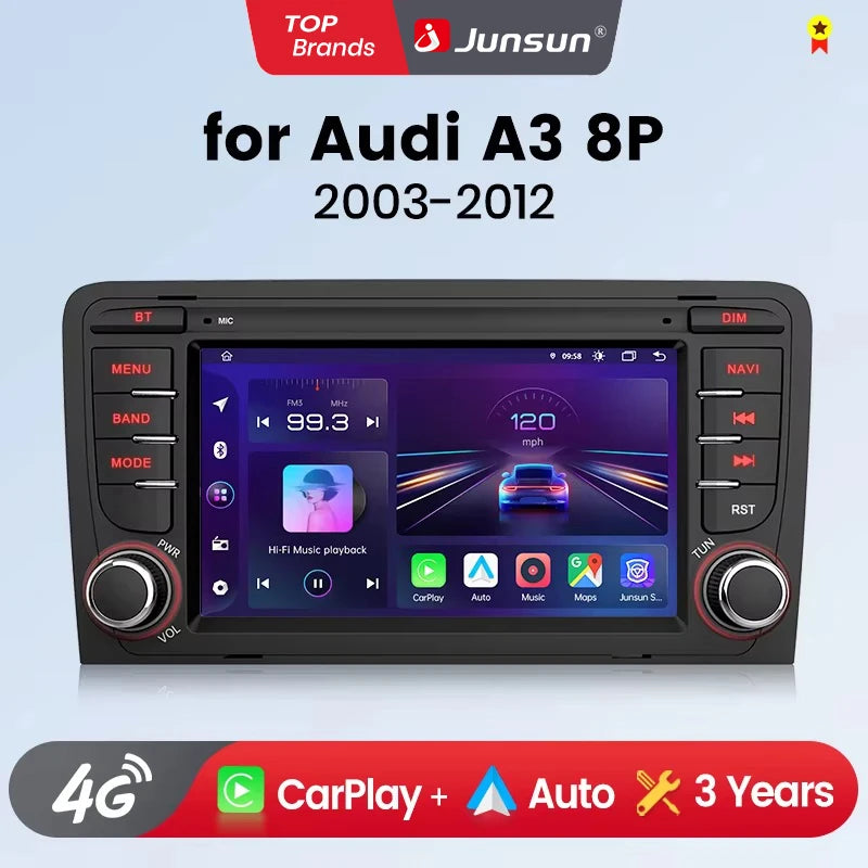 Junsun 7 "Wireless CarPlay for Apple Android Auto Car Radio for Audi A3 8P S3 2003-2012 GPS tereo Multimedia 4G 8core RDS