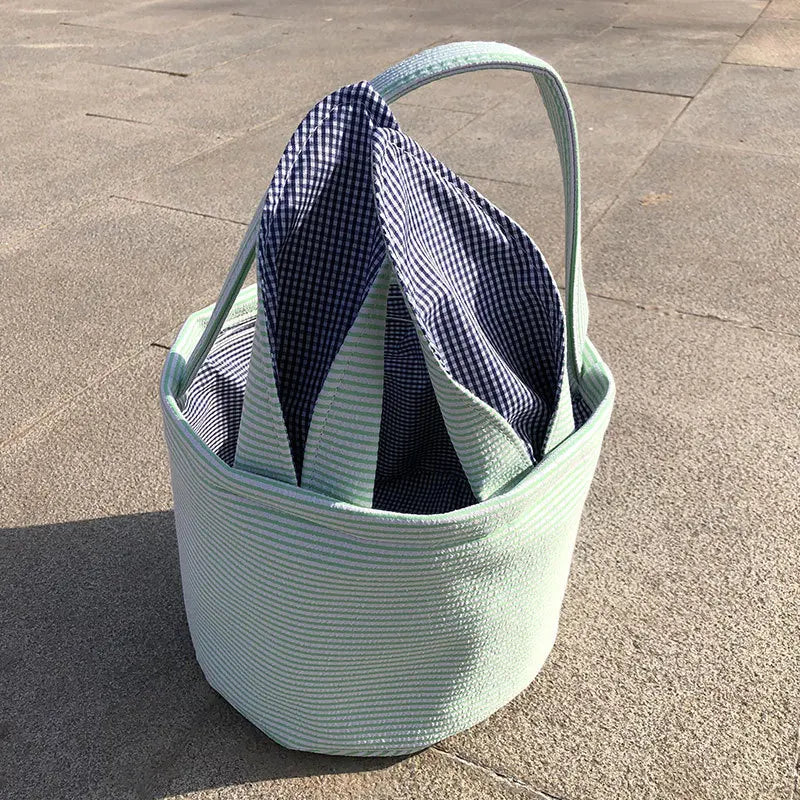 gingham floppy bunny ears and fabric handle. This bag will make the