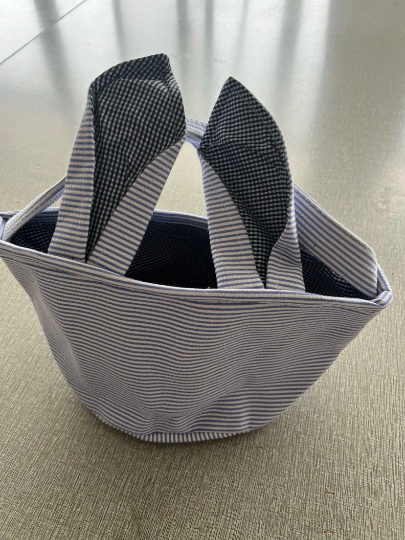 Absolutely adorable personalized seersucker Easter Basket with navy