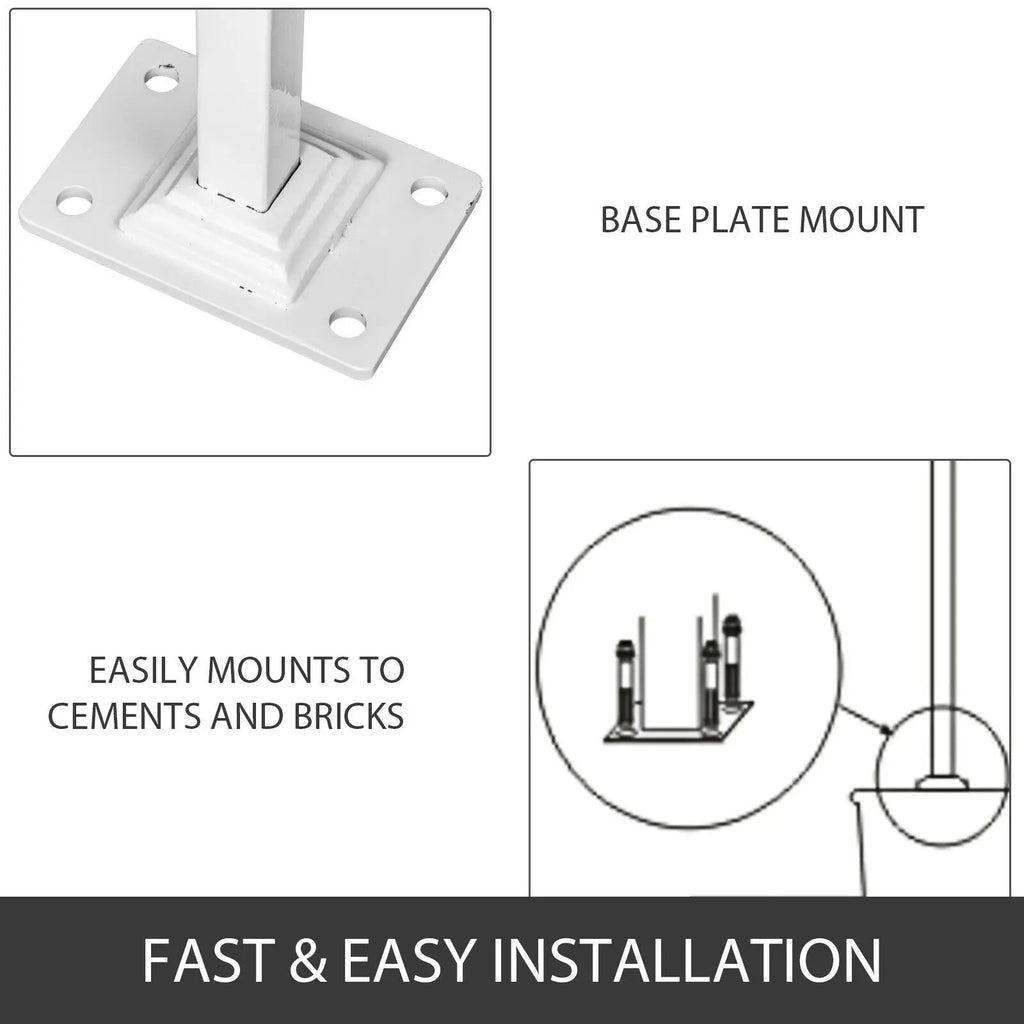 Fit for 1 or 2 Steps: The top area of the single post handrail allows for a full 20.5" of gripping space. The height is 38.8", and the 4" x 6" base plate improves stability. It is perfect for helping people keep balance in the rain or winter and prevent skidding.