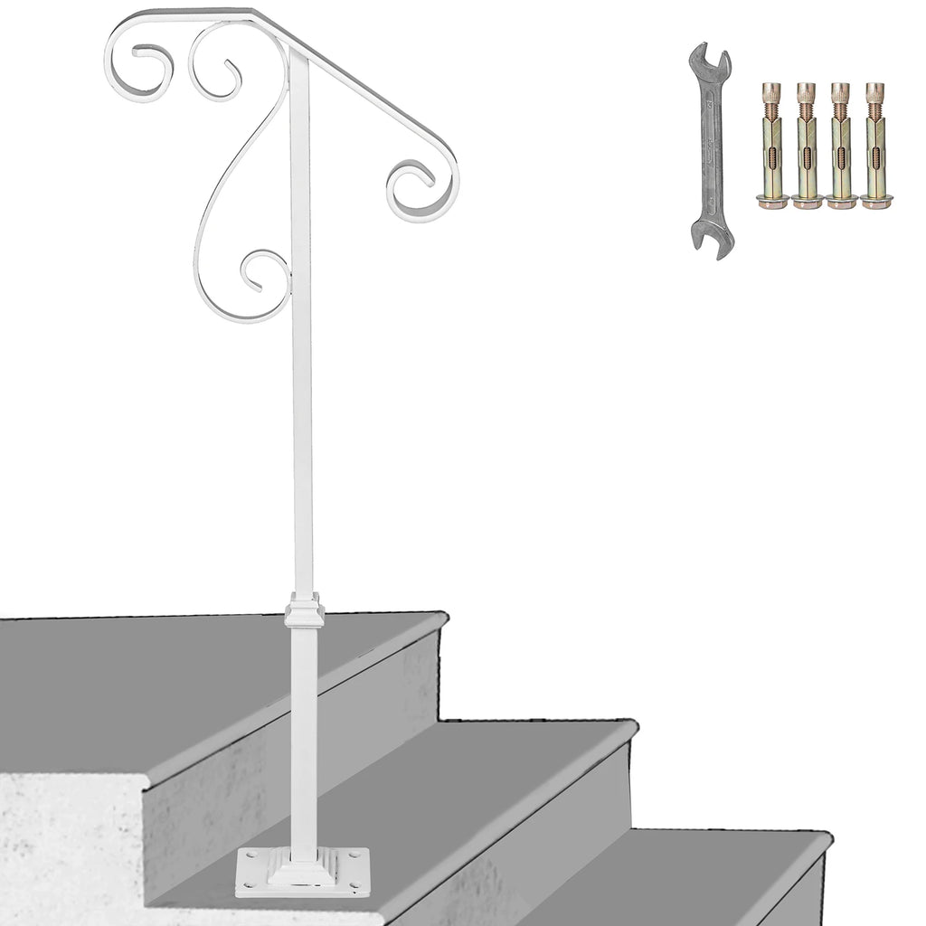 Stylish & Delicate Design: Our single post wrought iron rail features a smooth powder-coated surface with white for easy cleaning and maintaining. Its classic curly side and design is beautiful and delicate, making it more ornamental and eye-catching.