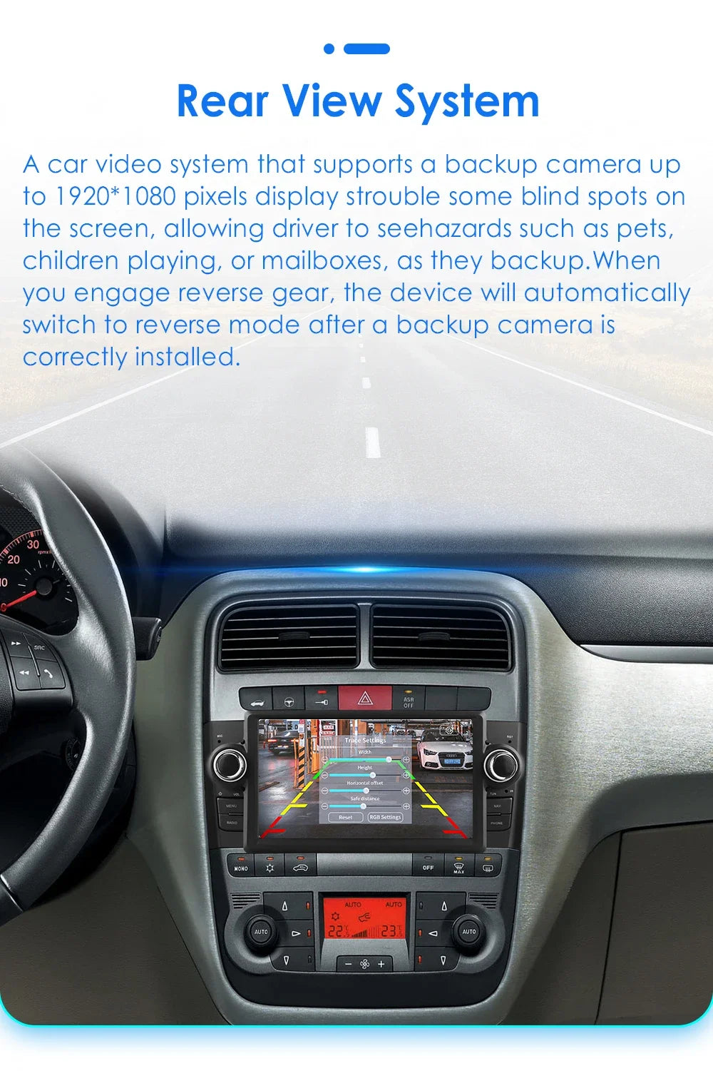 Rear View System(Rear View Camera needs to order separately): A car video system that supports a backup camera displays troublesome blind spots on a monitor , allowing a driver to see hazard such as pets ,children playing ,or mailboxes ,as they backup.