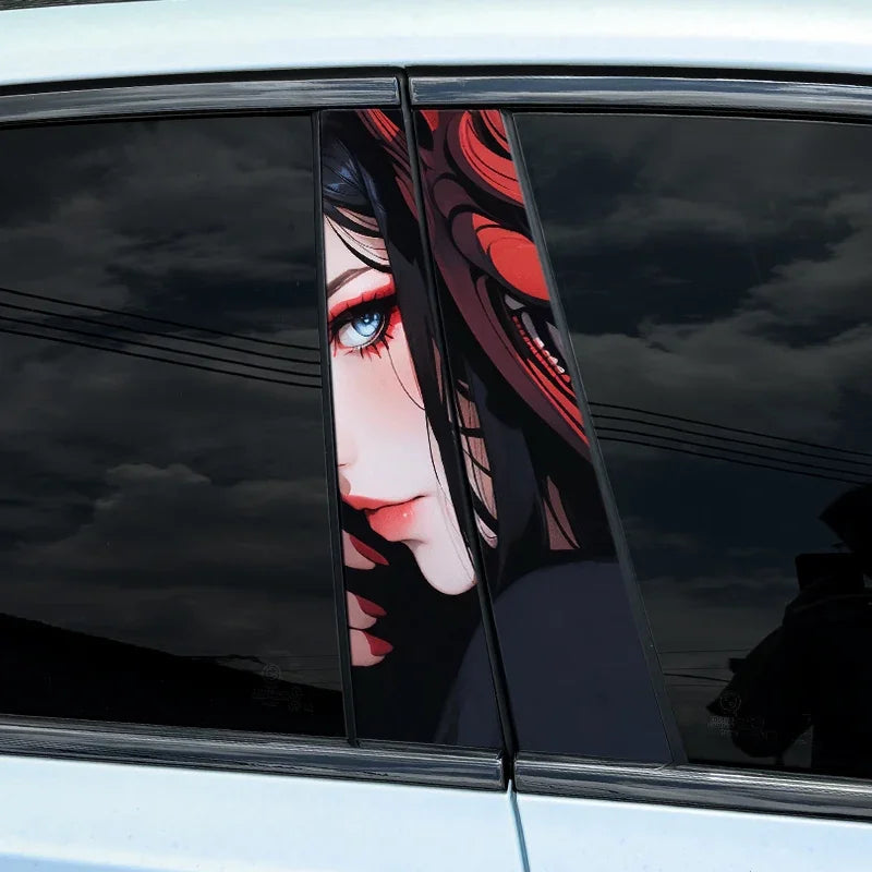 1PC/2PCS Japanese Style Prajna Car Stickers Auto B Pillar Waterproof JDM Decoration Cover Scratch Car Doors Pillar Vinyl Decals