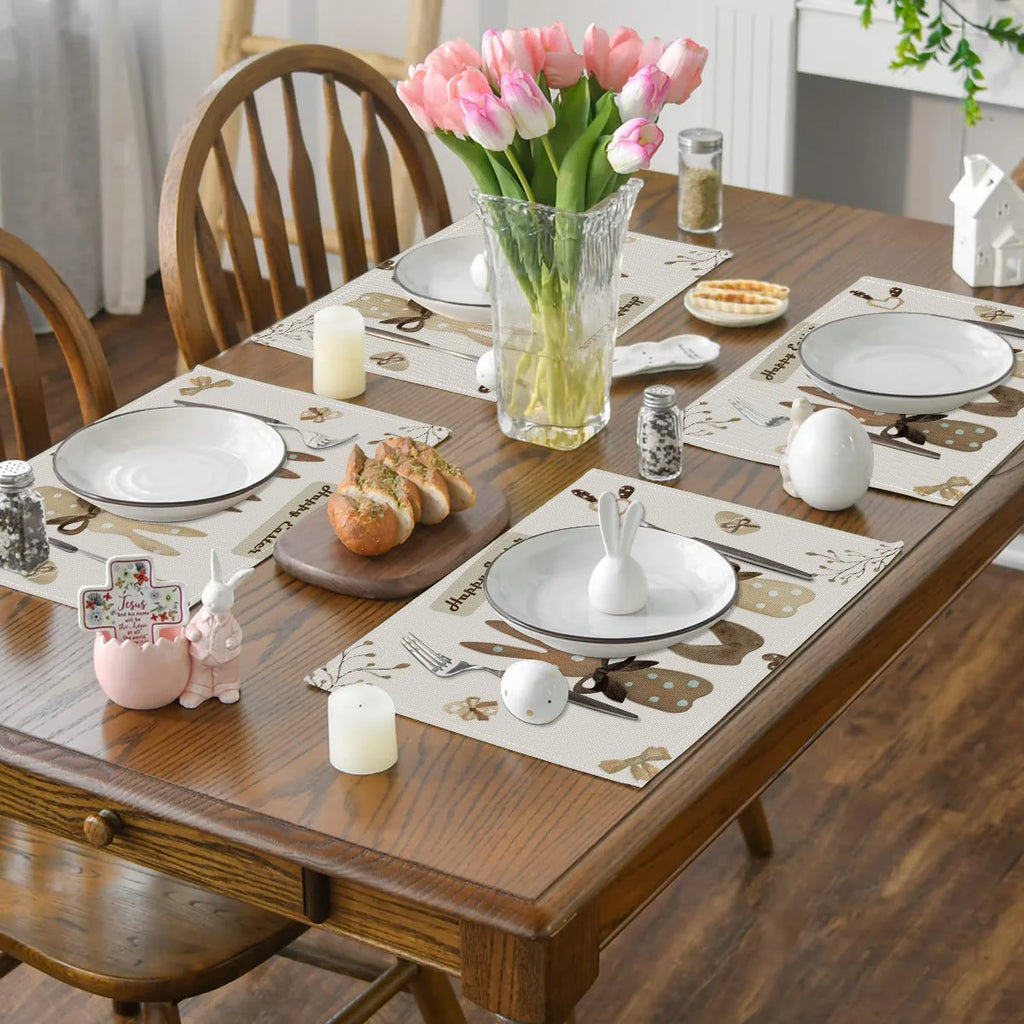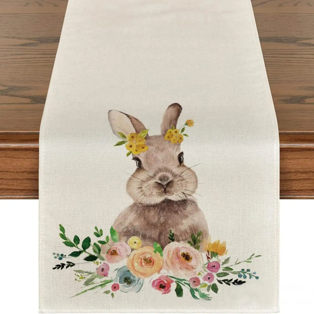 2024 Easter Rabbit Table Runner Linen Bunny Dining Table Cloth Placemat Spring Holiday Happy Easter Decoration For Home Kitchen