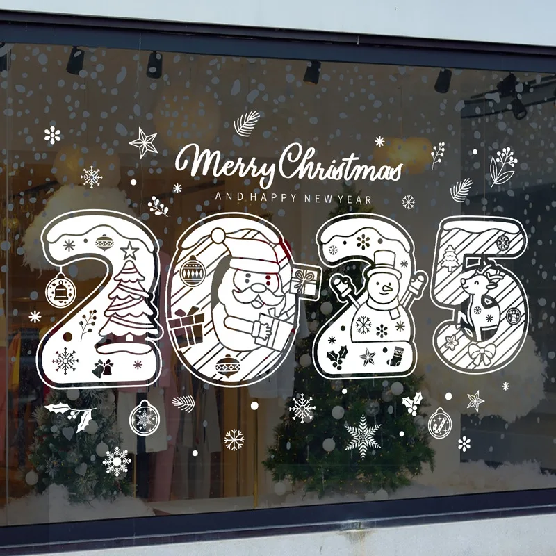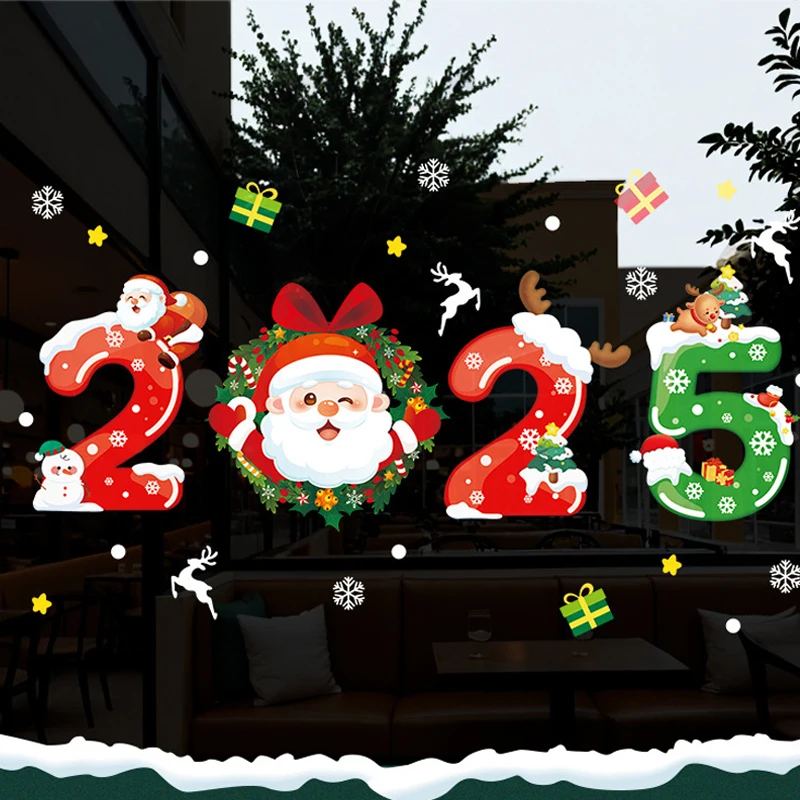 2025 New year Merry Christmas wall Window Stickers Elk Santa Claus Window Clings Decal Christmas Decoration For Home Navidad