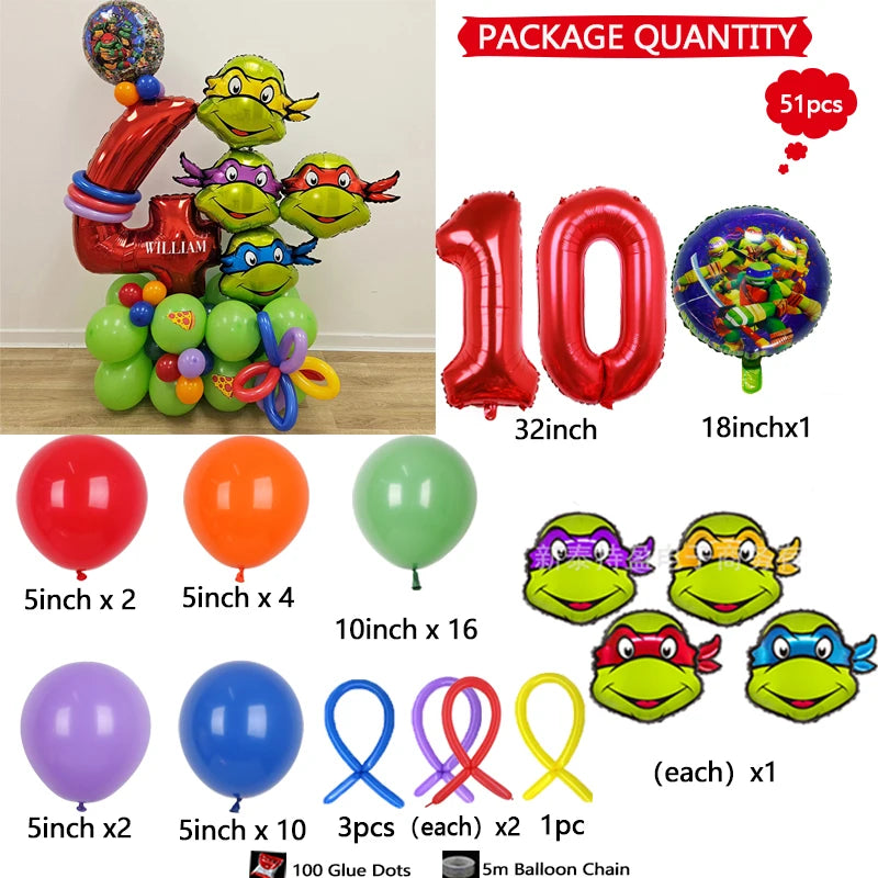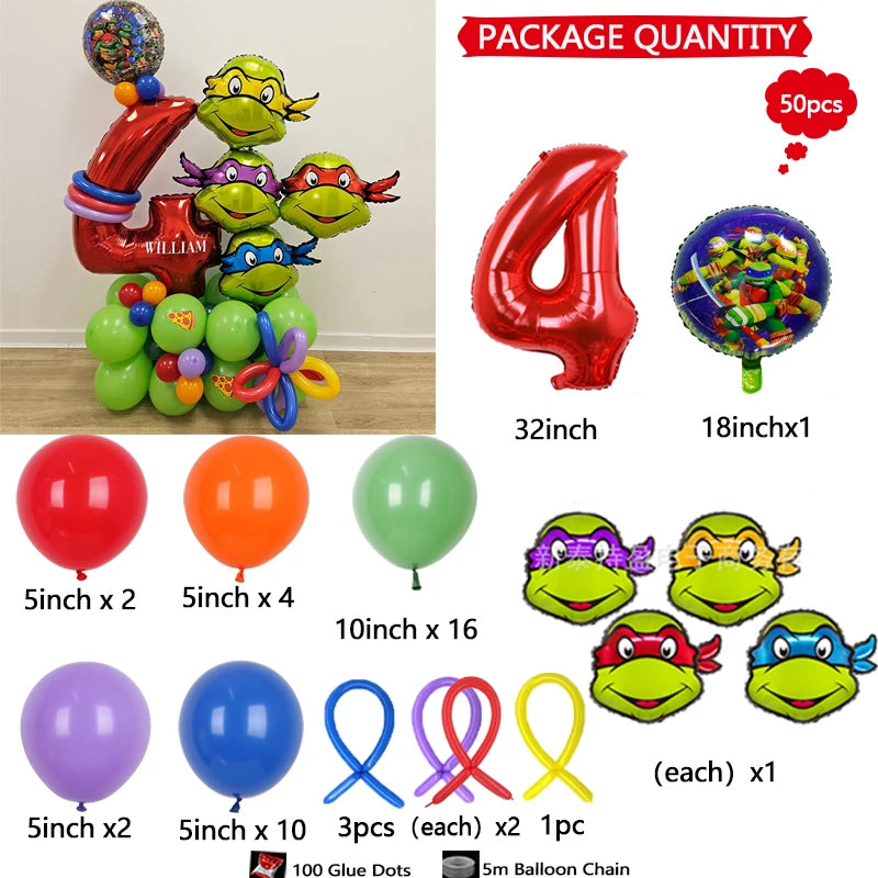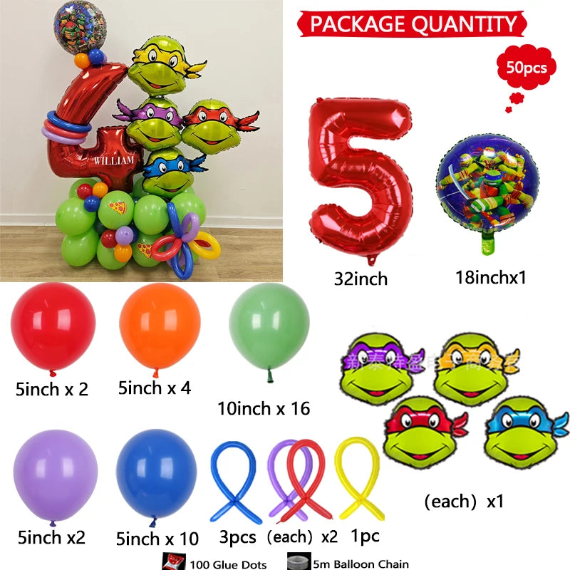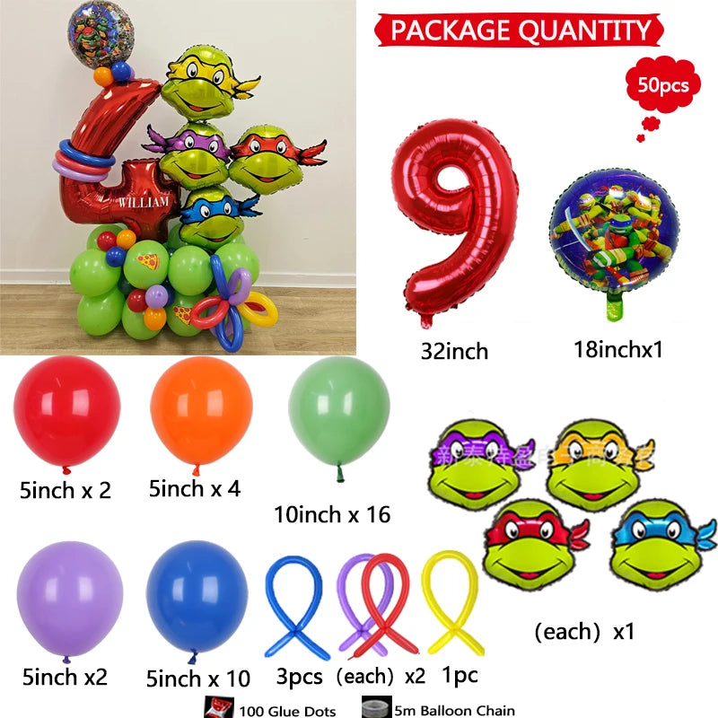 50Pcs Teenage Mutant Ninja Turtles American Animated Characters Superhero Warriors Red Numbers Birthday Party Decoration Balloon