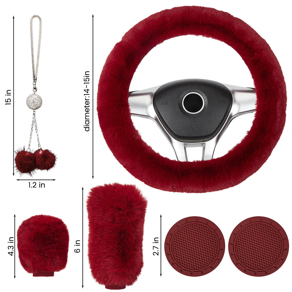 6Pcs interior boutique set: Including steering wheel cover, cup pad, pendant, handbrake cover, and gear lever cover, can decorate your car well and have a very comfortable feel.