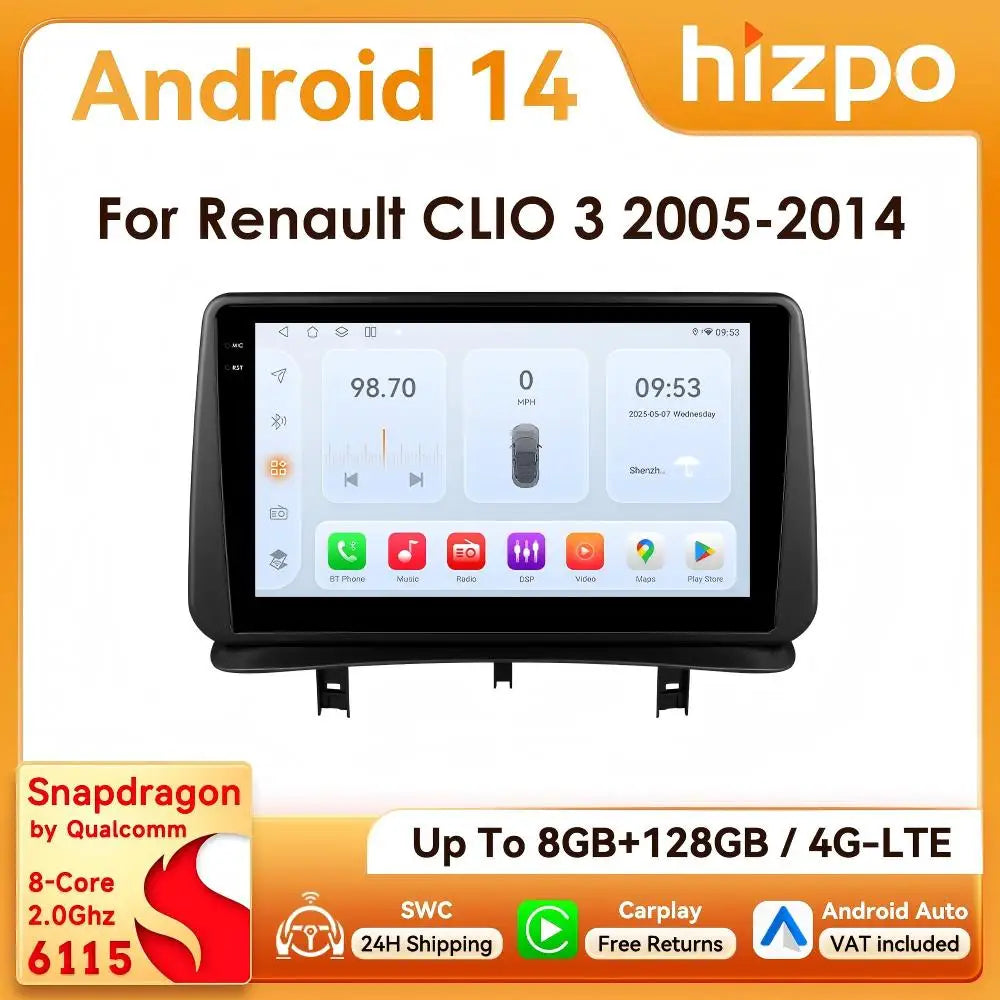 9" Hizpo 2Din Android14 Car Radio for Renault Clio 3 2005 - 2014