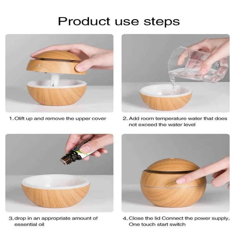 • Fragancia de aceite esencial:Este humidificador no solo tiene un propósito práctico, sino que también mejora su espacio vital con una fragancia relajante de aceite esencial.